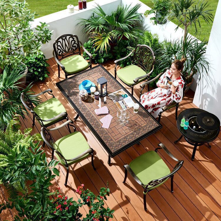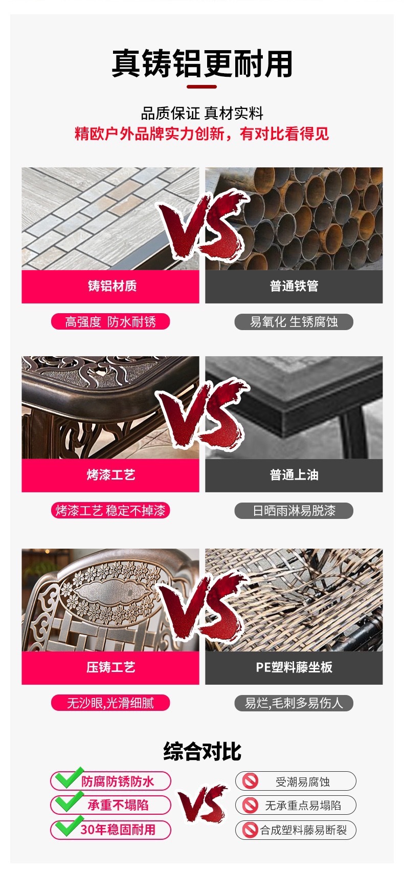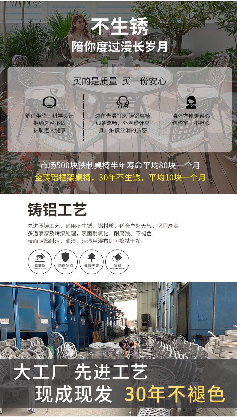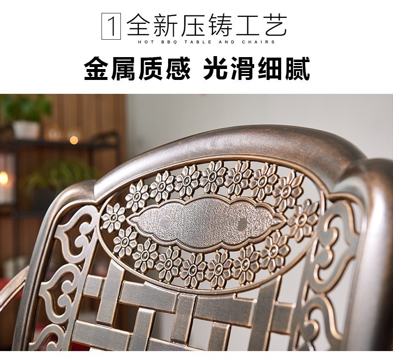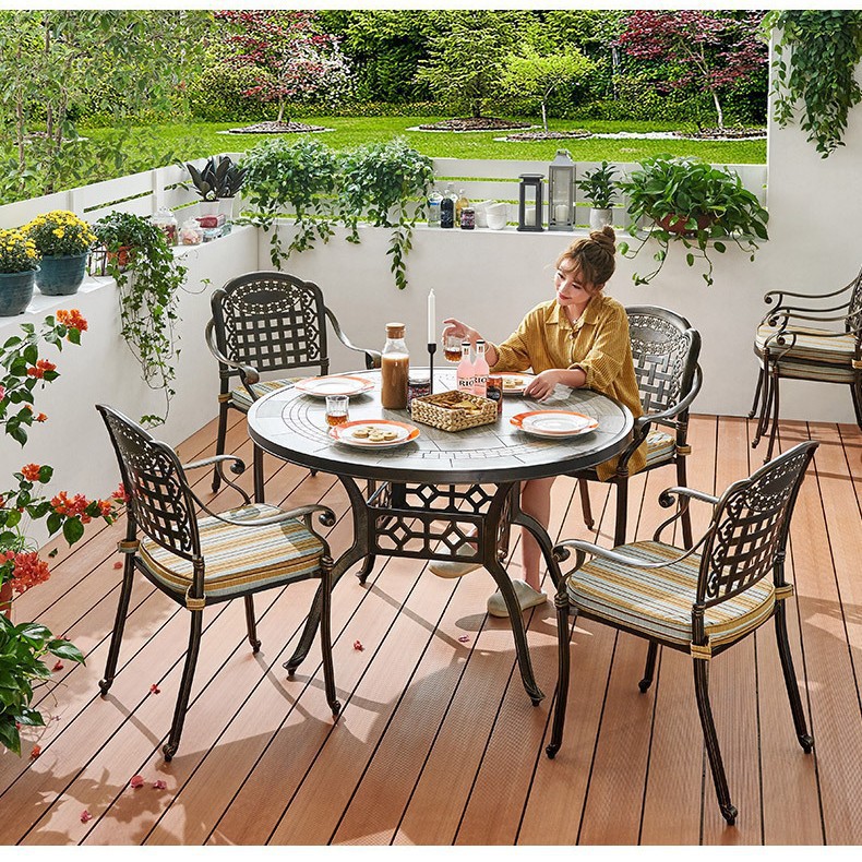 야외 식탁 바베큐 테이블과 의자 조합 야외 안뜰 테이블과 의자 발코니 철공 야외 캐스트 알루미늄 테이블 및 의자 정원 가구스토어 가기