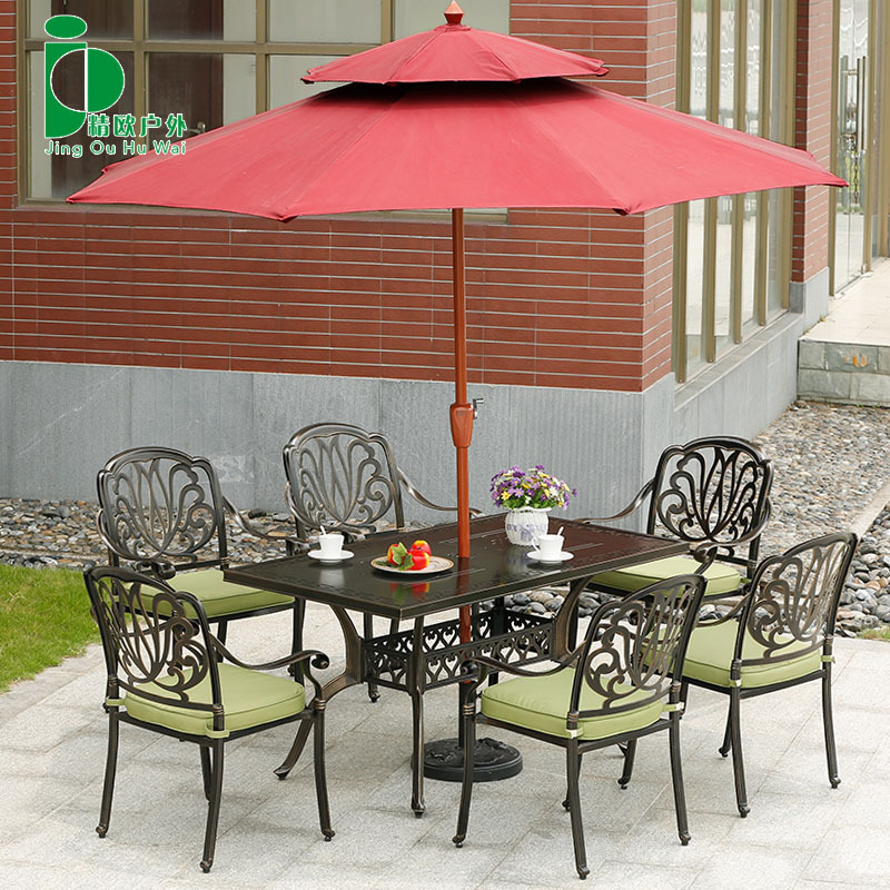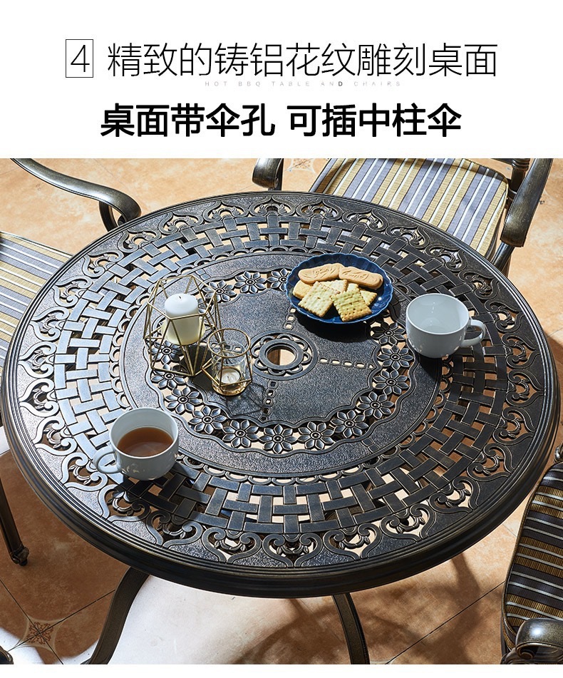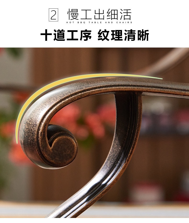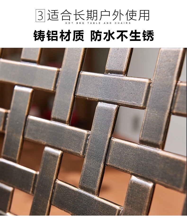 야외 식탁 바베큐 테이블과 의자 조합 야외 안뜰 테이블과 의자 발코니 철공 야외 캐스트 알루미늄 테이블 및 의자 정원 가구