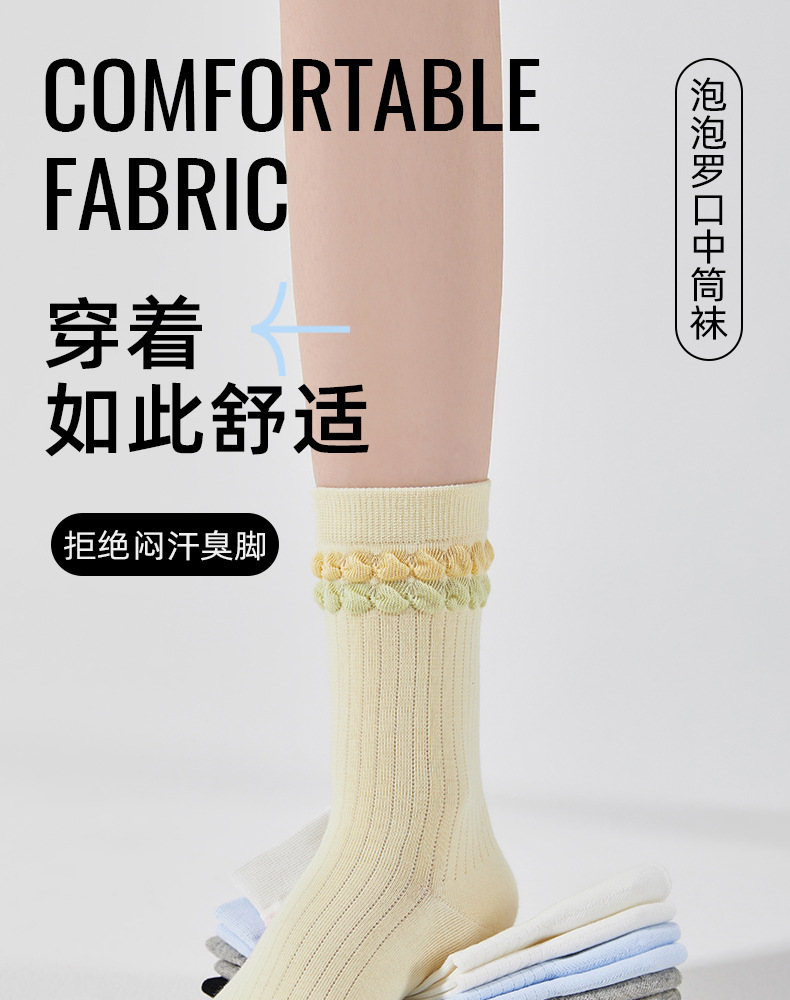 맞춤형 양말 여성 튜브 양말 봄과 여름 통기성 땀 흡수성 2025 새로운 탈취제 레이스 버블 스타킹스토어 가기