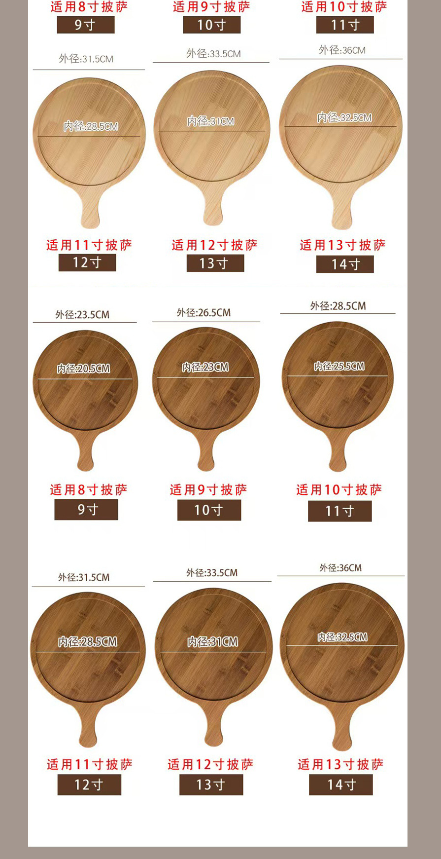 가정용 솔리드 우드 피자 트레이 핸들 빵 스시 치즈 트레이 서양 식품 나무 트레이 멀티 사이즈 배치스토어 가기