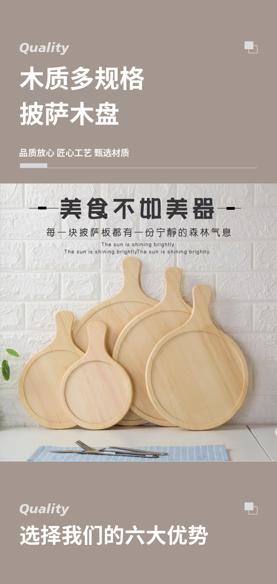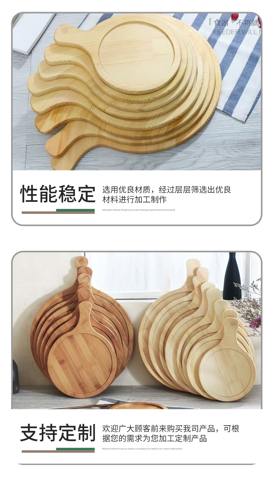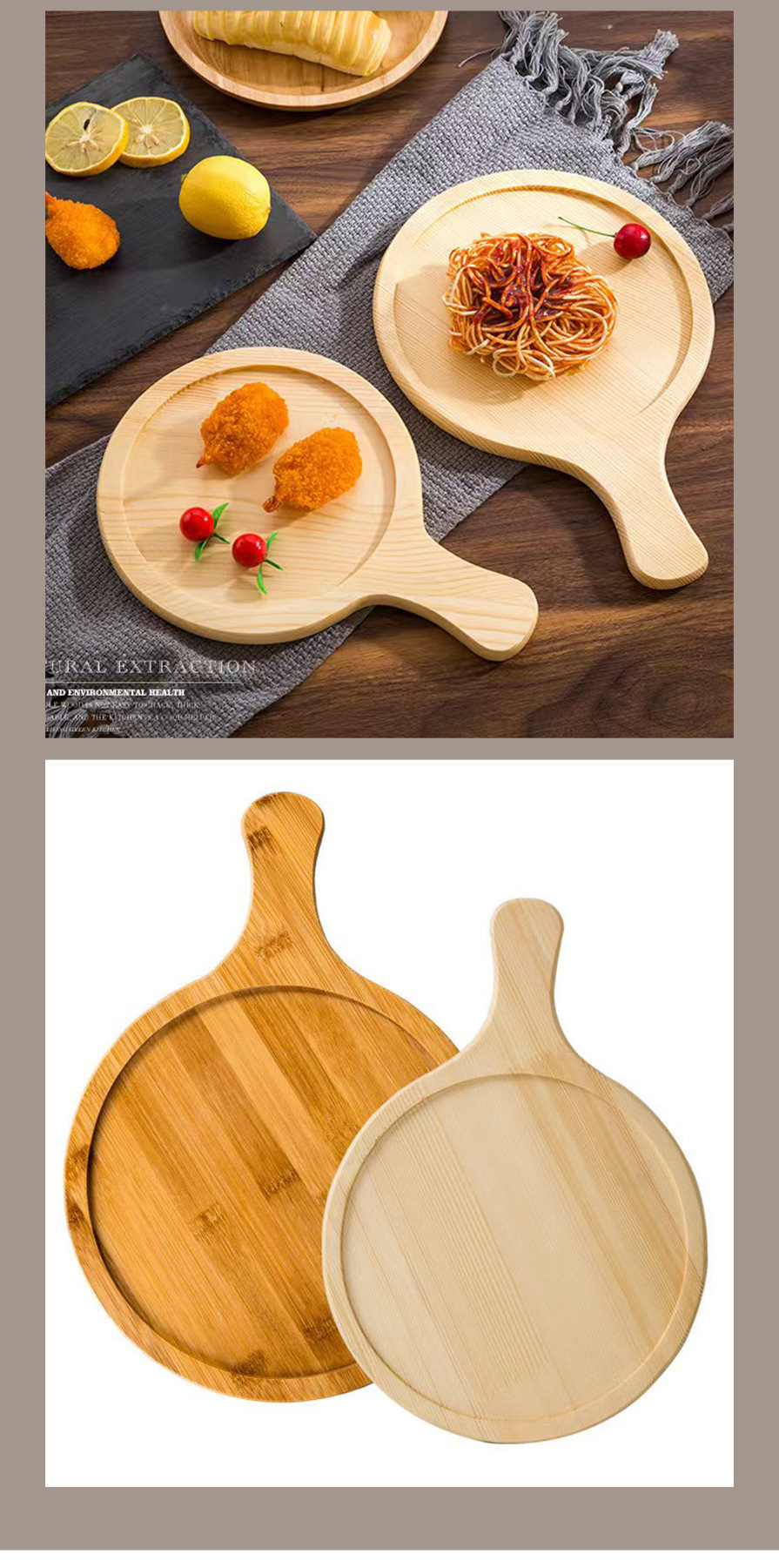 가정용 솔리드 우드 피자 트레이 핸들 빵 스시 치즈 트레이 서양 식품 나무 트레이 멀티 사이즈 배치