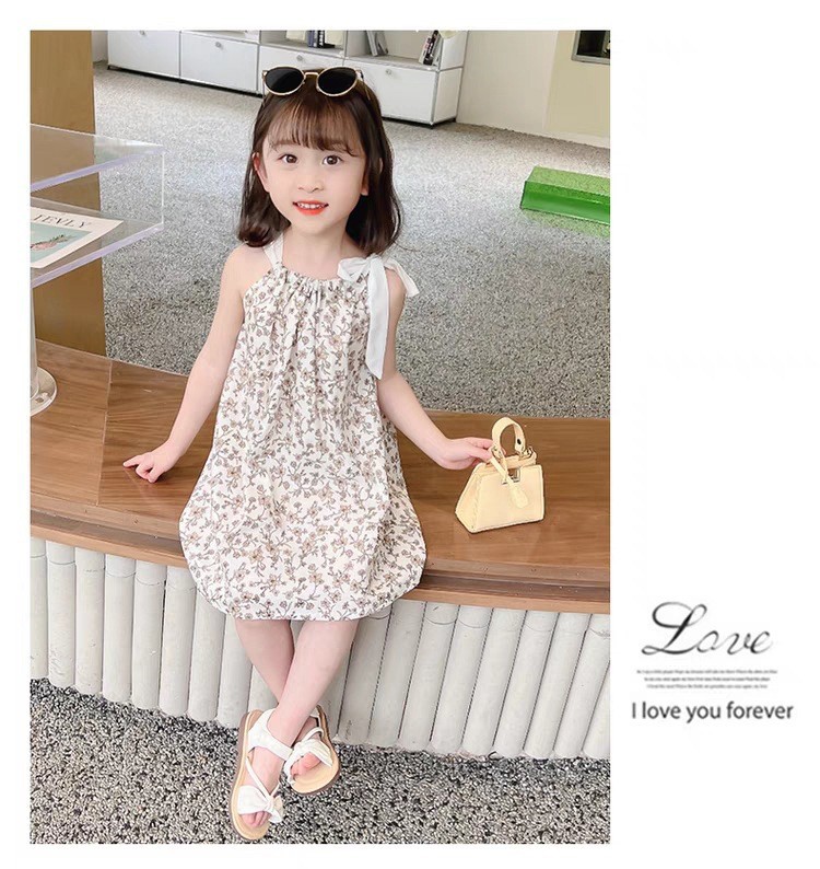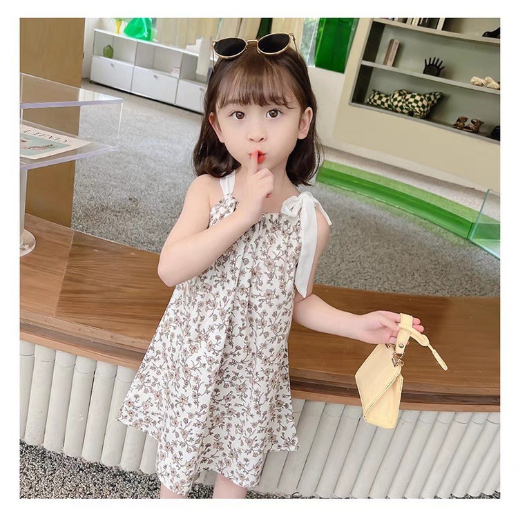 국경 간 한국 스타일 새 소녀 여름 슬링 원피스 아기 소녀 원피스 꽃 원피스 얇은 서양식 공주 원피스
