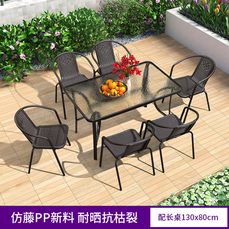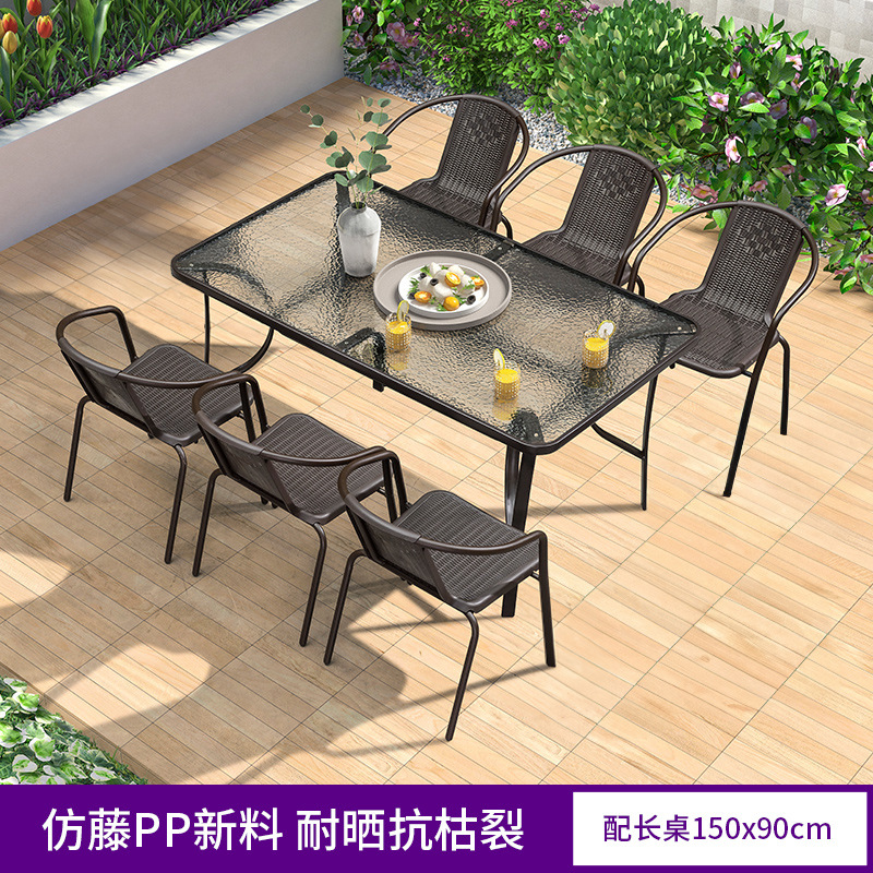 • 6【의자】+1【구멍이 있는 유리장 테이블 120X80cm】.