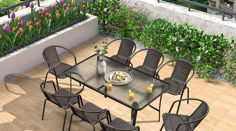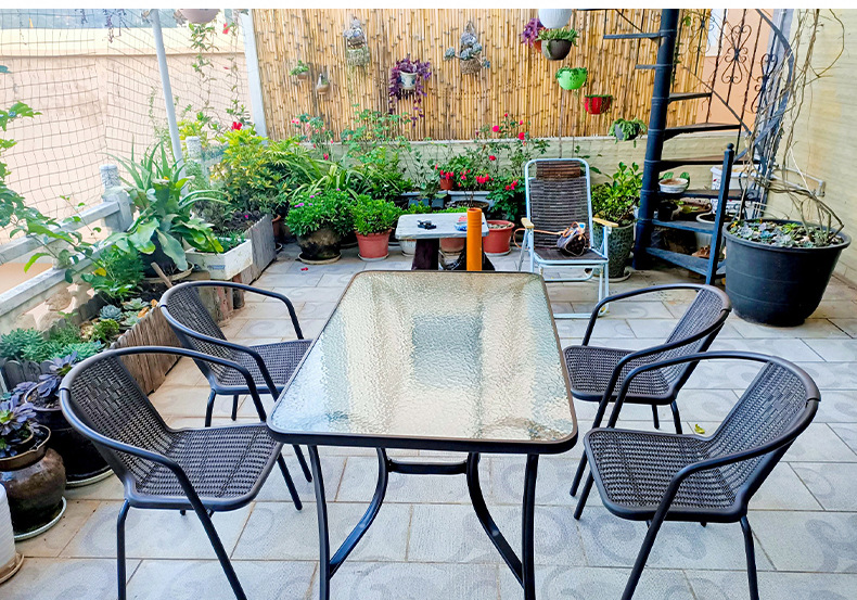 보라색 잎 야외 테이블과 의자 조합 안뜰 야외 철공 레저 의자 야외 테라스 야외 식탁 정원 식탁 및 의자
