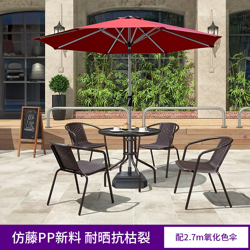 • 4+1(D80 원형 테이블) + 2.7m 산화색 중앙 기둥 우산(32kg 물탱크 포함)