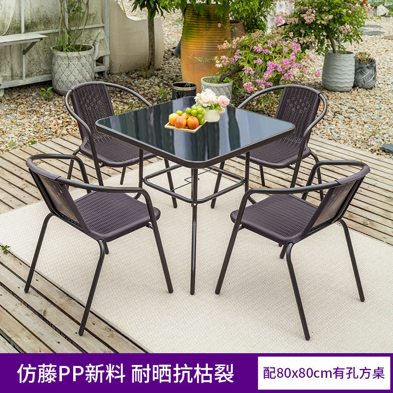 • 4 [의자] + 1 [구멍이 있는 접이식 사각 유리 테이블 80*80]]