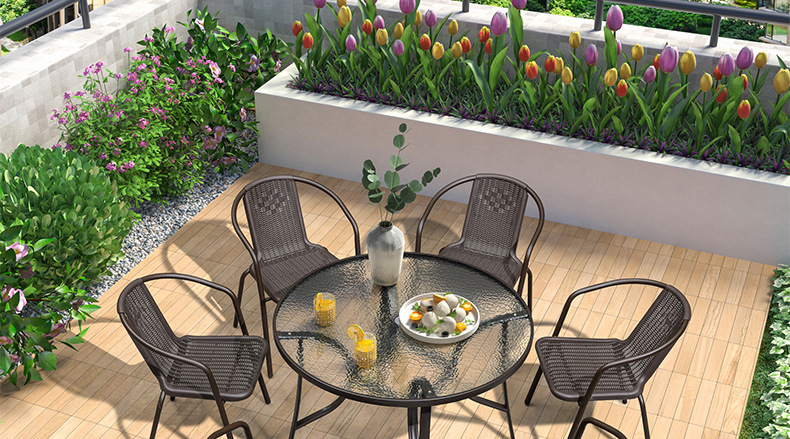 보라색 잎 야외 테이블과 의자 조합 안뜰 야외 철공 레저 의자 야외 테라스 야외 식탁 정원 식탁 및 의자스토어 가기