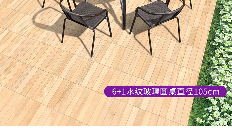 • 6 [의자] + 1 [구멍이 있는 유리 원형 테이블 105cm].