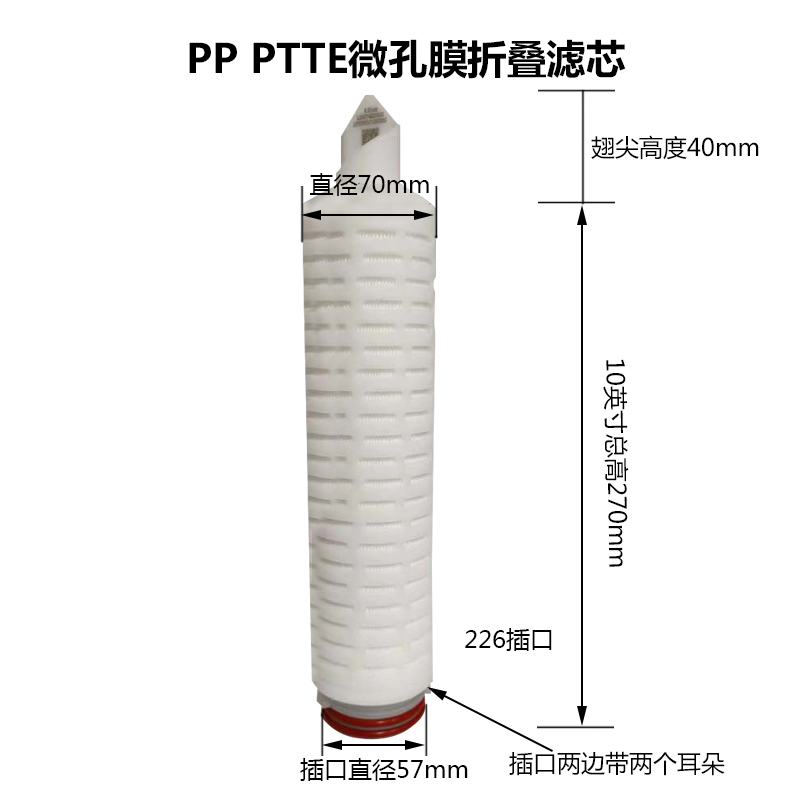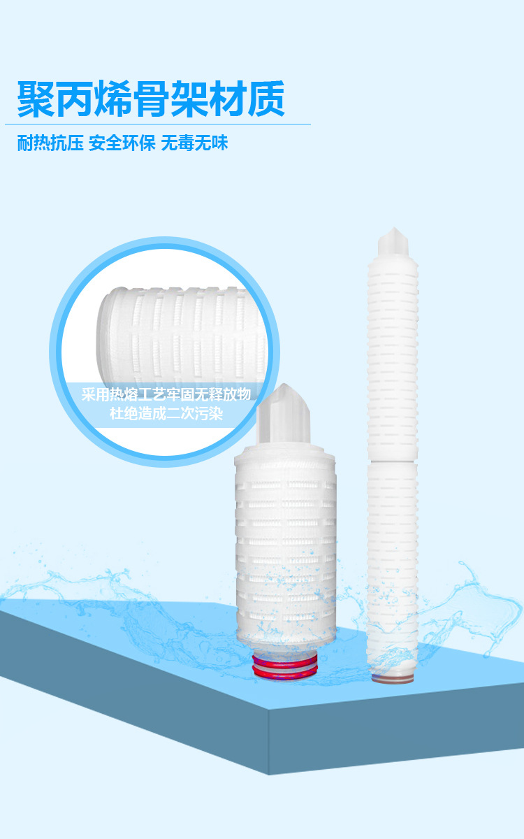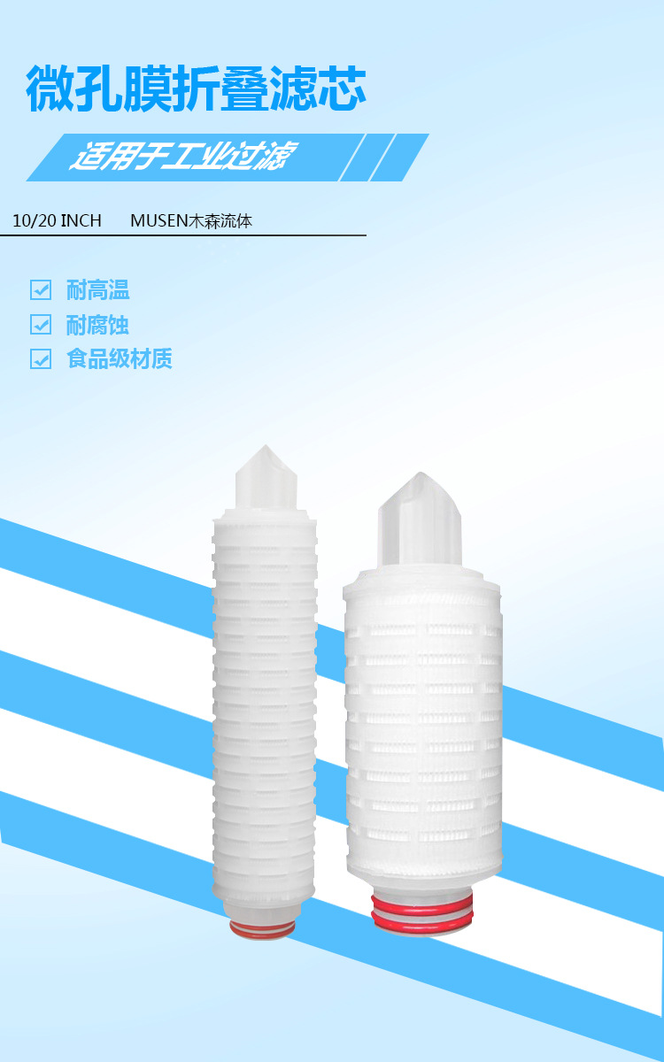 10 인치 20 인치 접이식 필터 요소 PP 미세 다공성 접이식 멤브레인 필터 요소 와인 필터 요소 평평한 압력 0.22 0.45 미크론