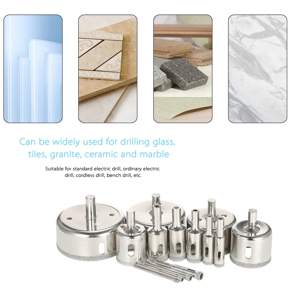 공급 전기 도금 15pcs 조각 세트 전기 도금 유리 드릴 비트 다이아몬드 유리 구멍 오프너 세트스토어 가기