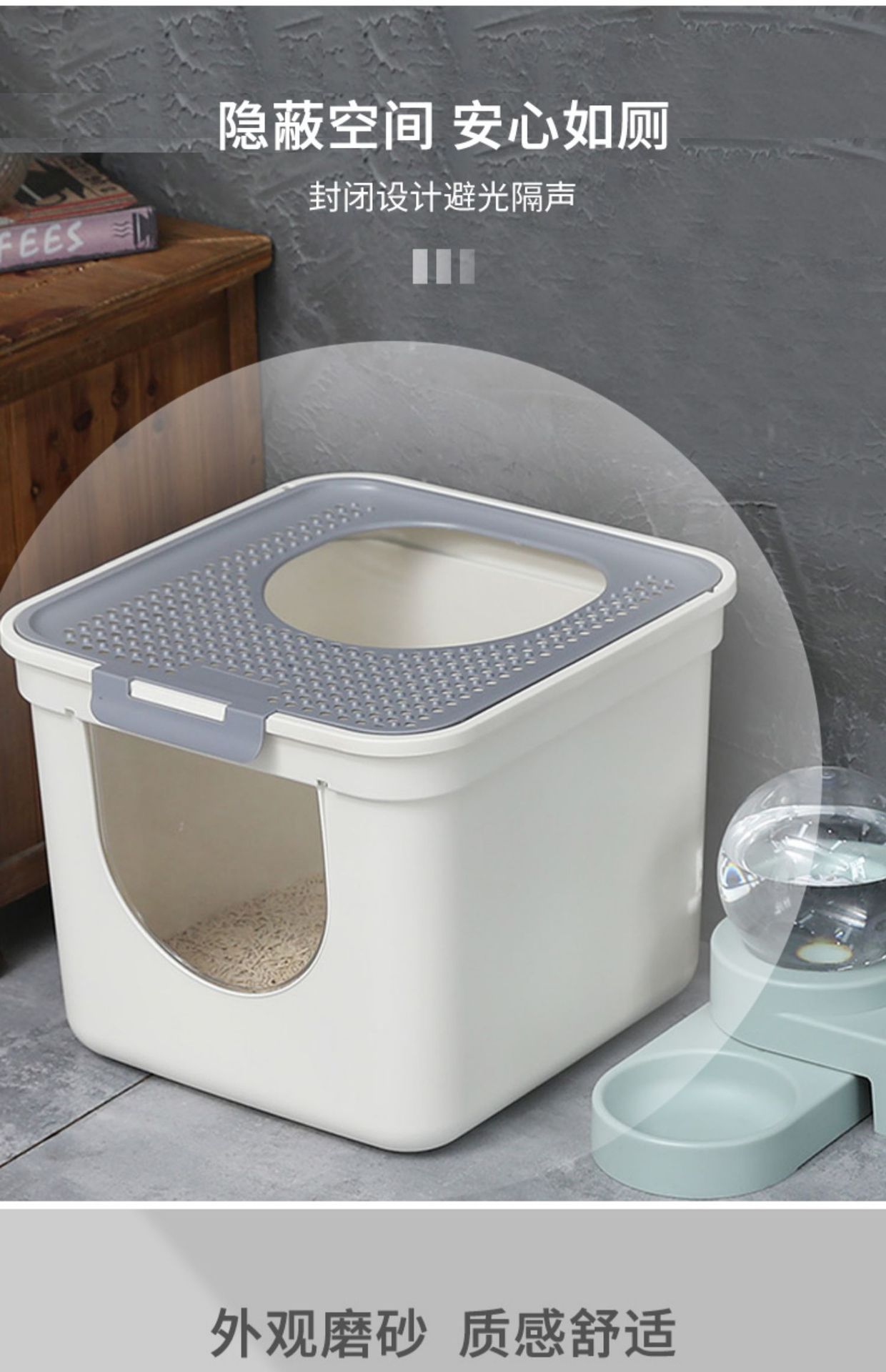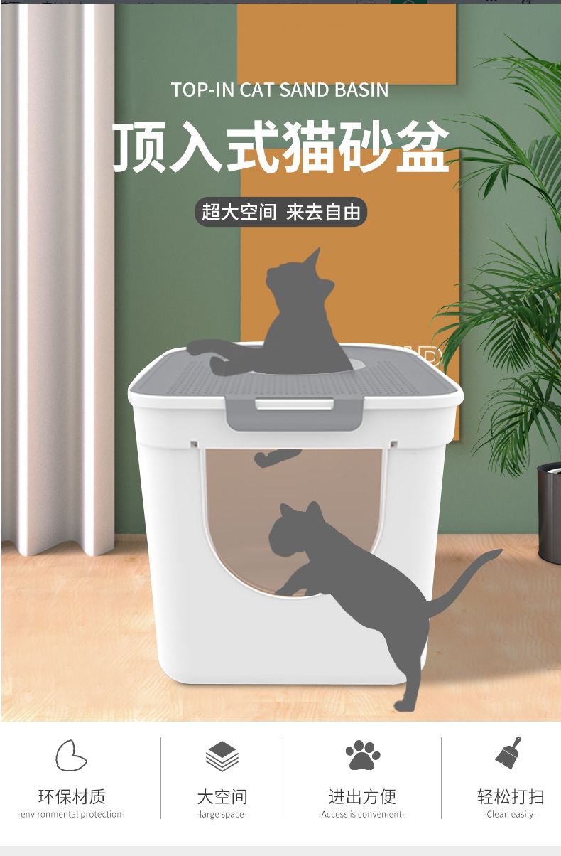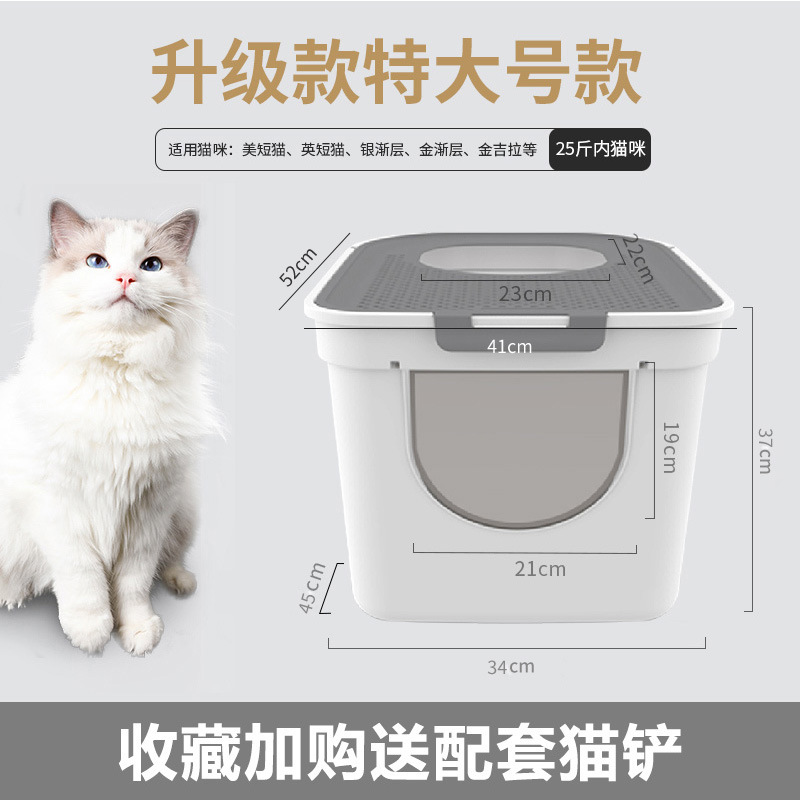 큰 고양이 쓰레기 상자 고양이 화장실 상단 입구 더블 도어 안티 스플래시 변기 고양이 공급 완전히 밀폐 된 냄새 방지 고양이 쓰레기 분지스토어 가기