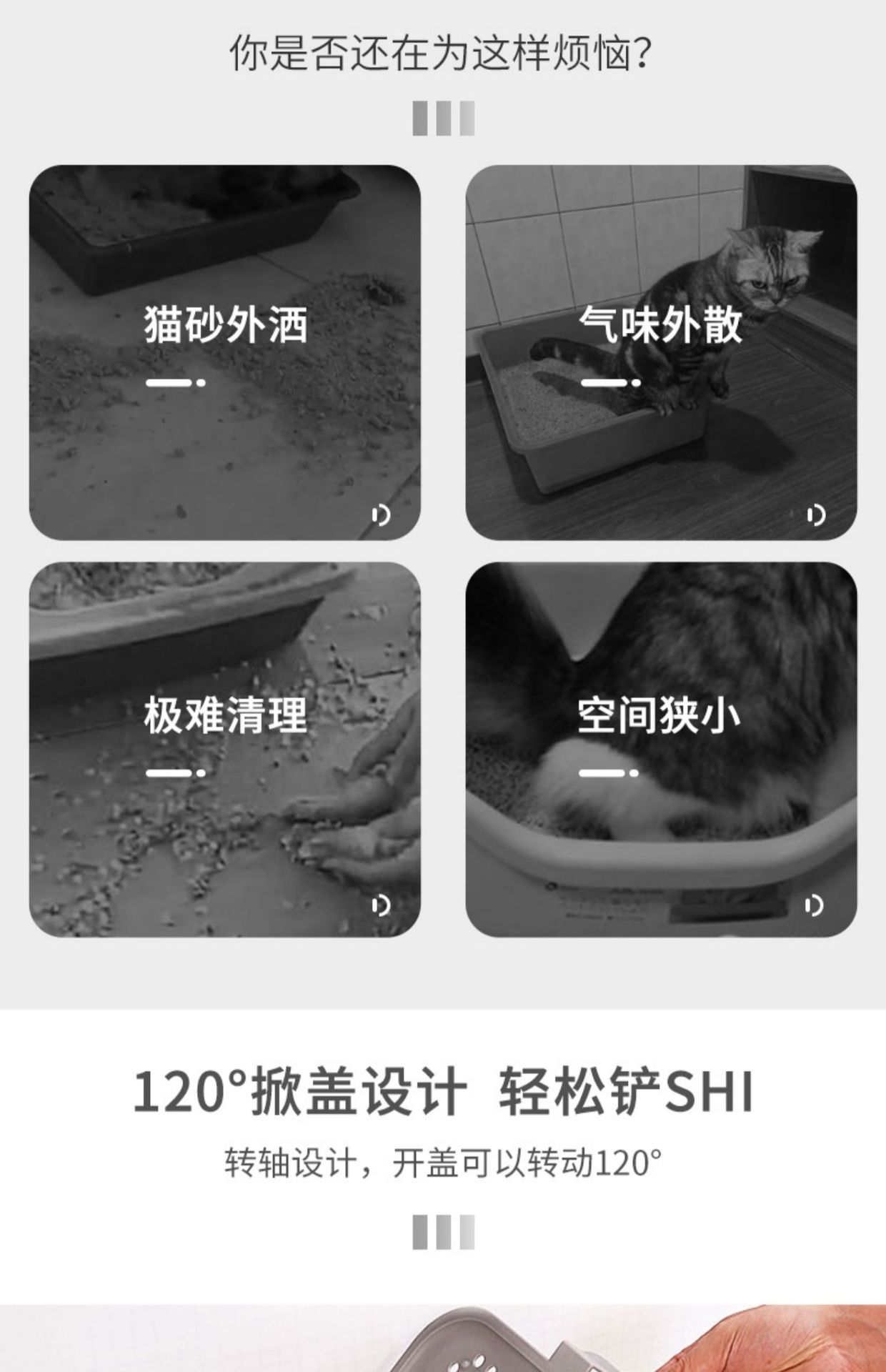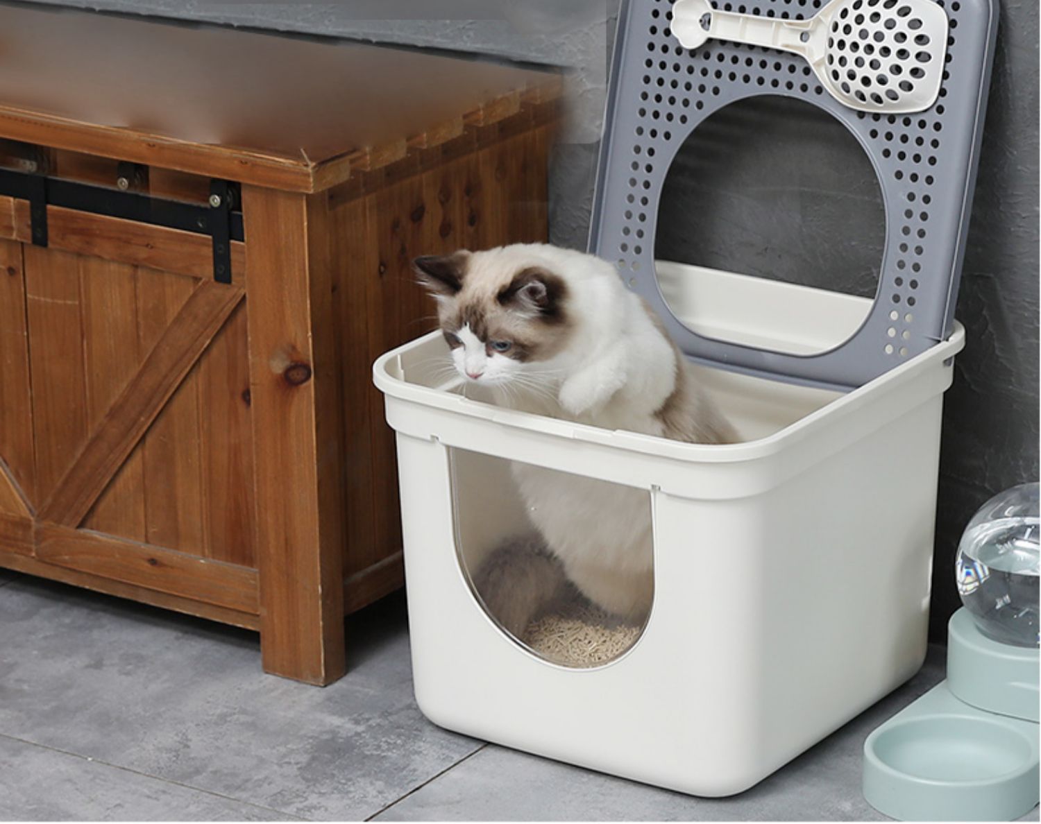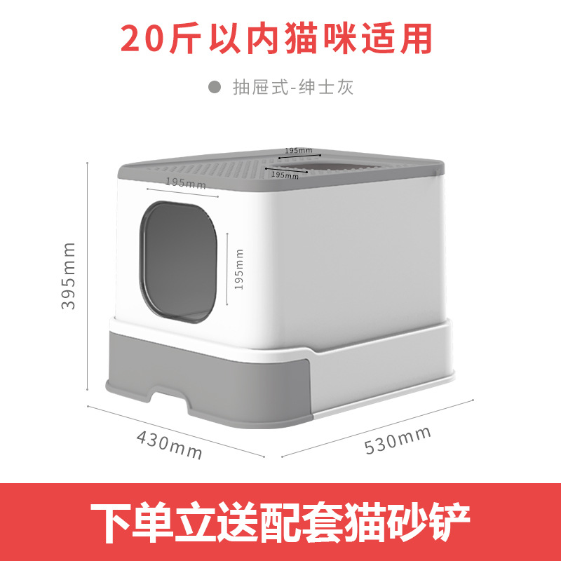 • 양방향 서랍 상단 삽입형 - 신사 회색 - 무료 고양이 배변 국자