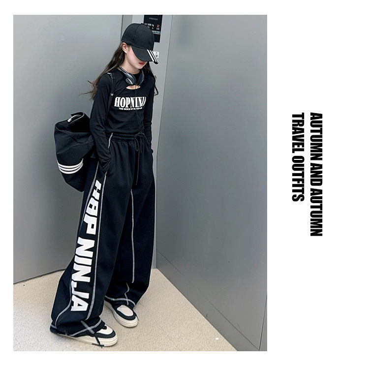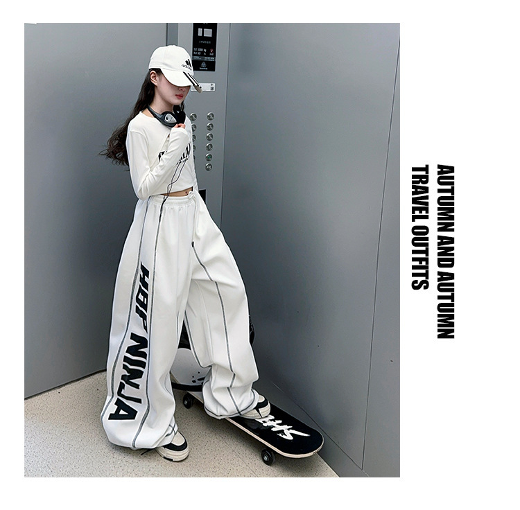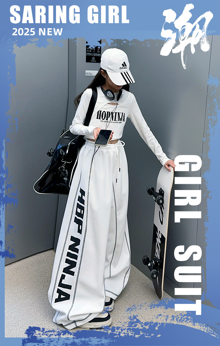 소녀 세트 봄 원피스 2025 새로운 큰 어린이 재즈 스트리트 댄스 원피스 소녀 느슨한 거리 튀김 작업 바지 트렌디 쿨스토어 가기