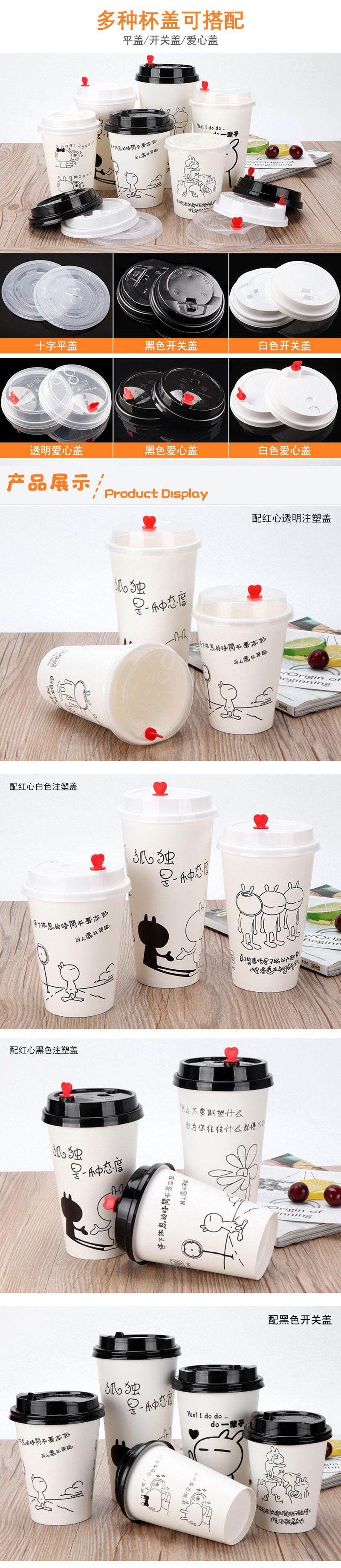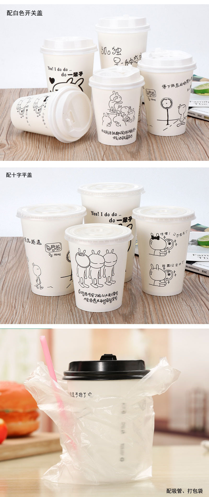 우유 차 종이컵 일회용 컵 뜨거운 음료 커피 두유 컵 두꺼운 뚜껑이있는 상업용 포장 컵 커피 컵