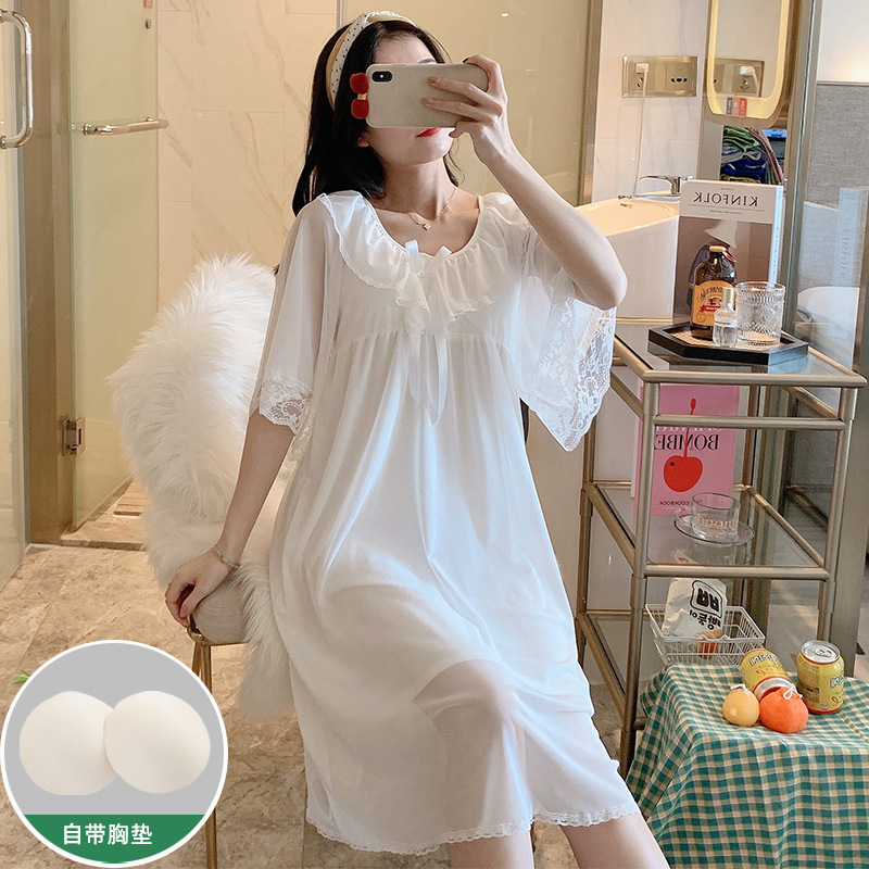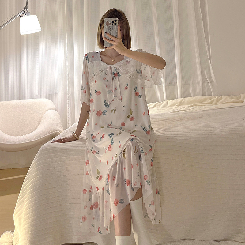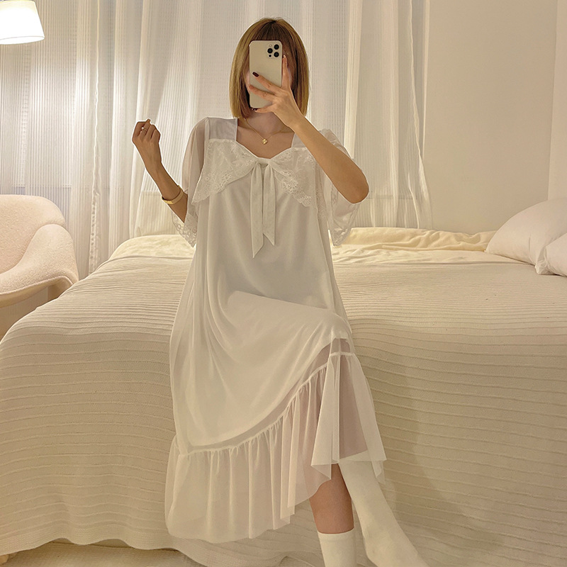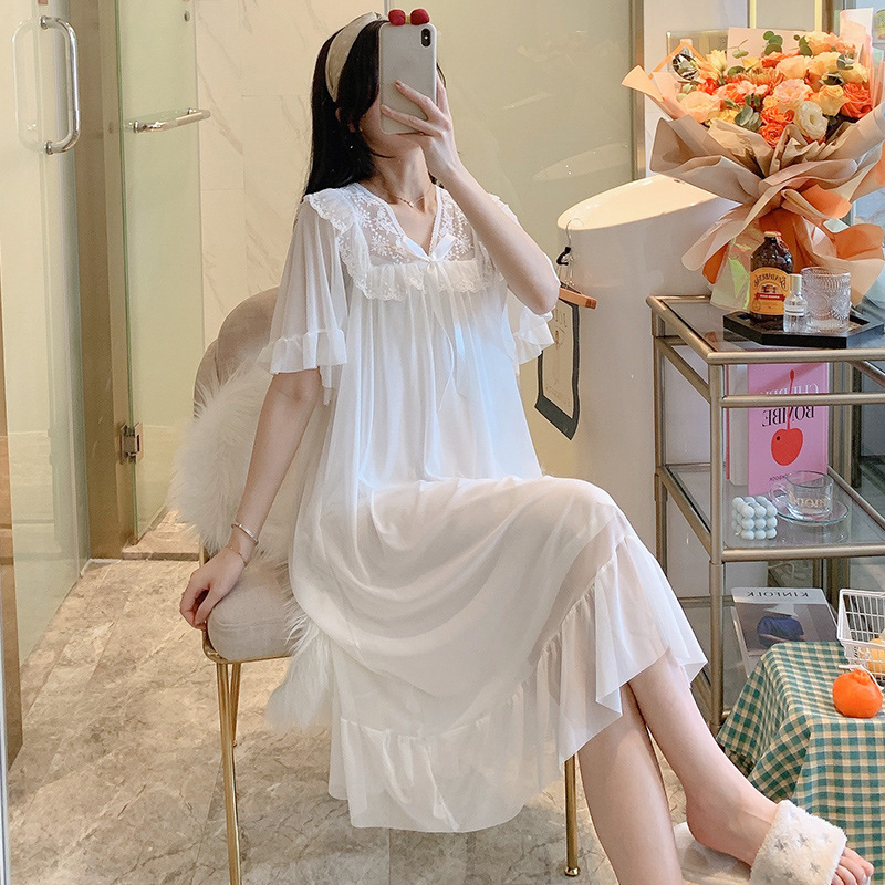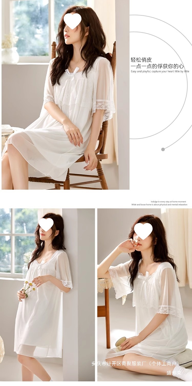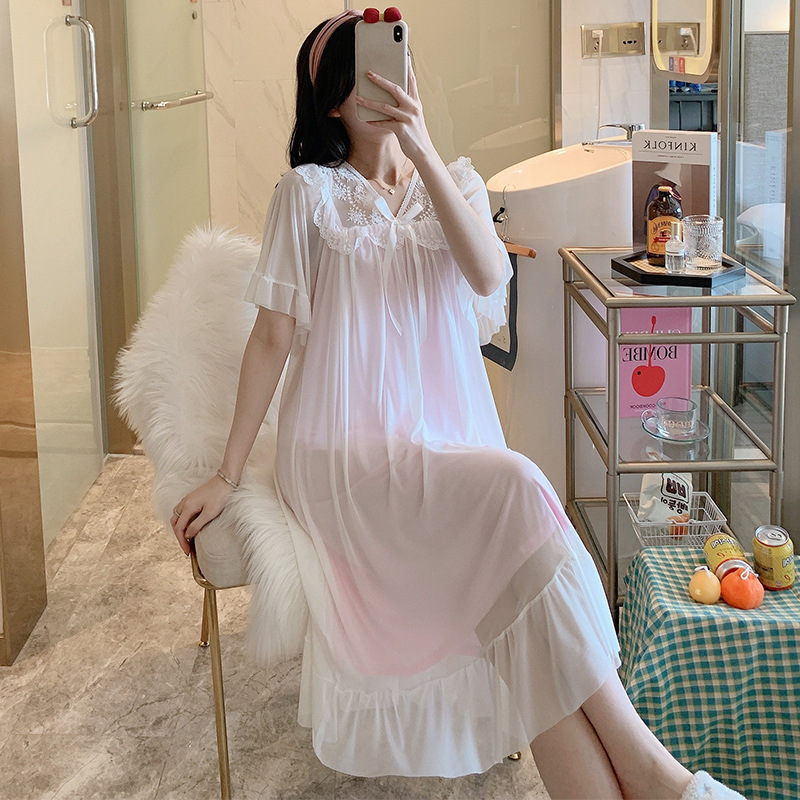2025 빈티지 코트 스타일 여성의 봄과 가을 긴 소매 모달 섹시한 레이스 중간 길이의 가을 공주 스타일 잠옷스토어 가기