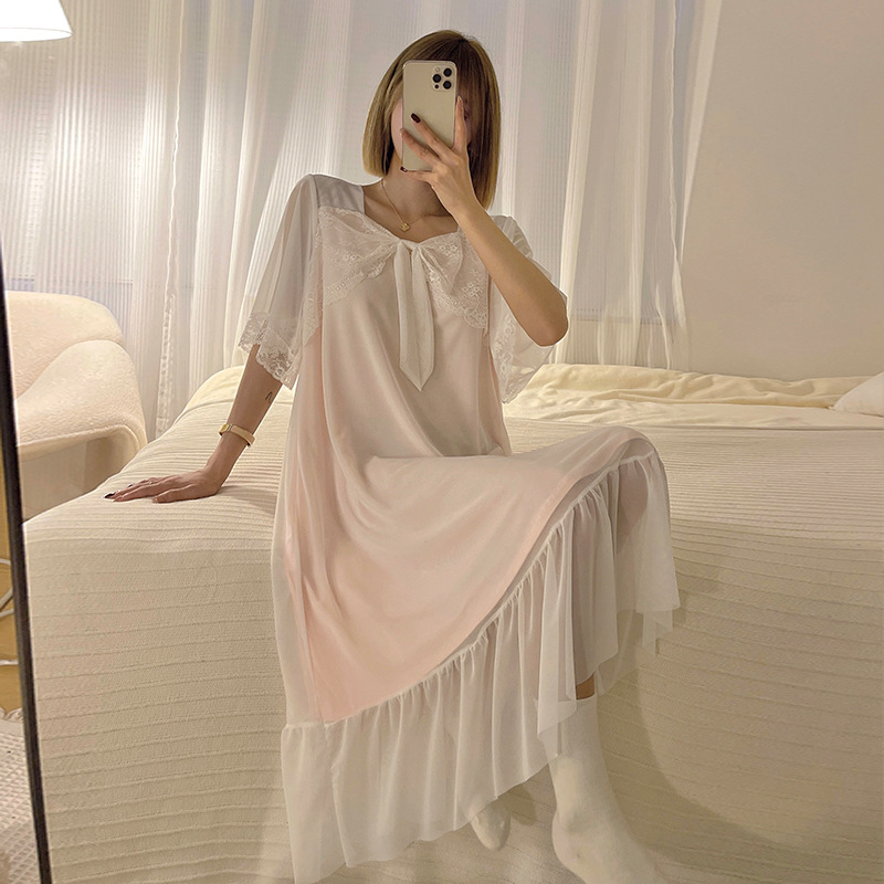 2025 빈티지 코트 스타일 여성의 봄과 가을 긴 소매 모달 섹시한 레이스 중간 길이의 가을 공주 스타일 잠옷