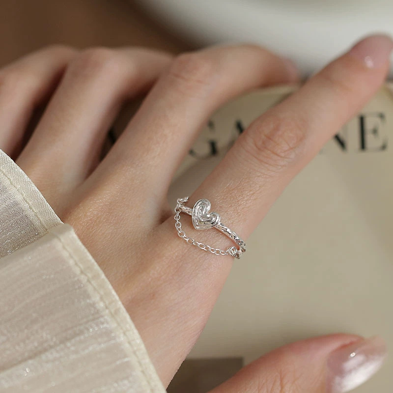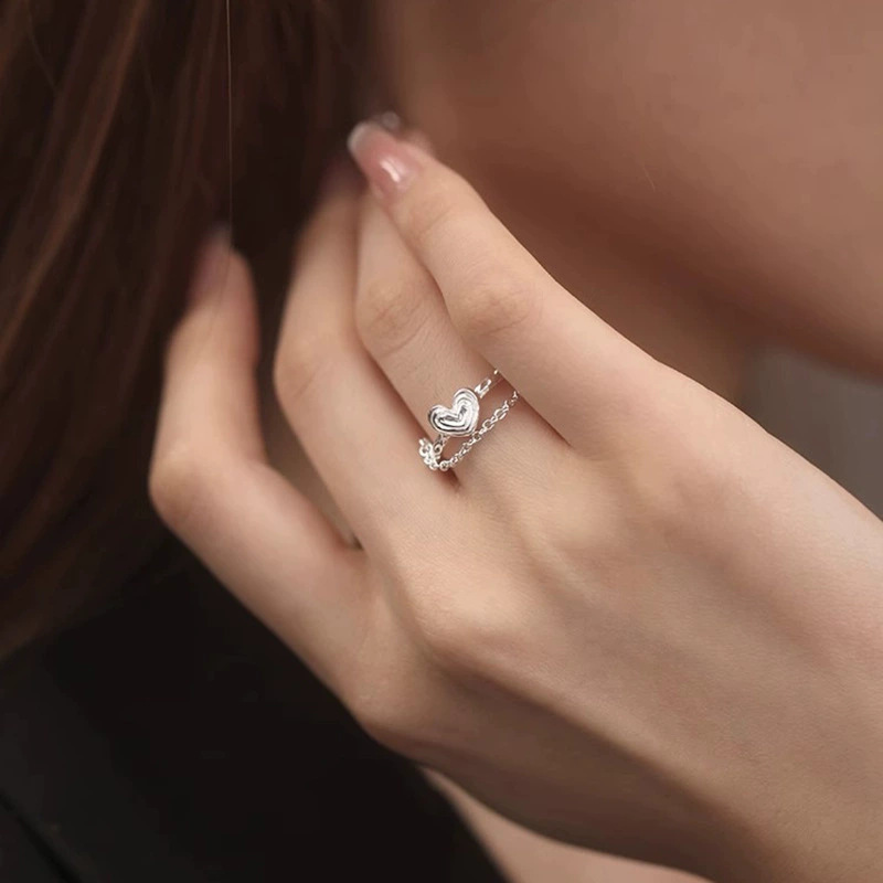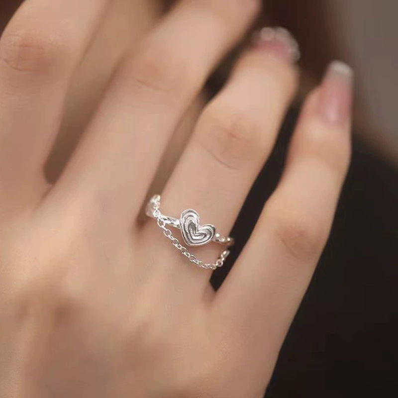 2025 새로운 체인 사랑 반지 소녀 높은 감각 디자인 성격 하트 모양의 손가락 반지 기질 반지스토어 가기