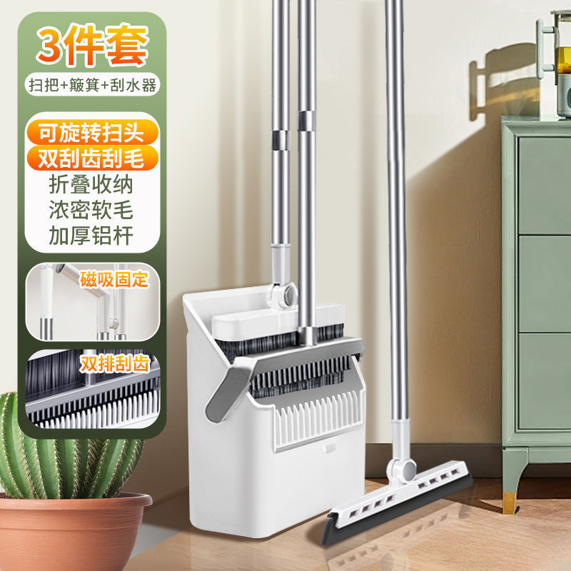 두꺼운 새 스타일 빗자루 더스트 팬 세트 가정용 매직 소프트 울 브룸 스위핑 바닥 접이식 더블 스크래핑 치아