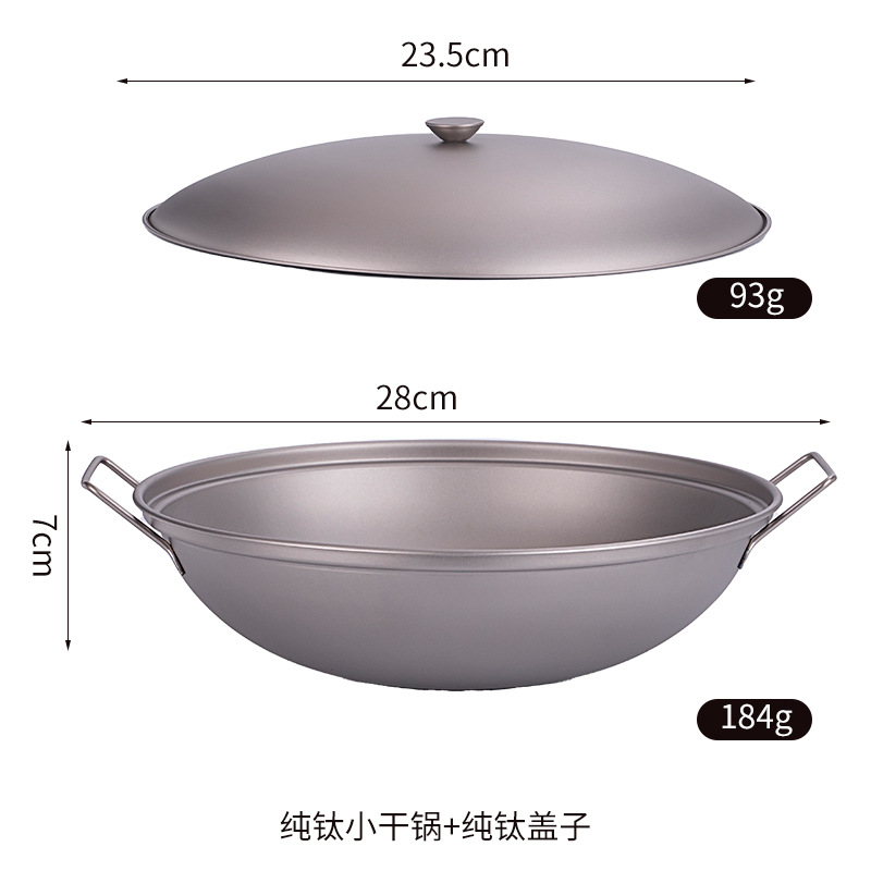 순수 티타늄 야외 작은 건조 냄비 가정용 상업용 뜨거운 냄비 가게 마른 냄비 알코올 스토브 화재 캠핑 피크닉 수프 냄비 두 배 귀 빛