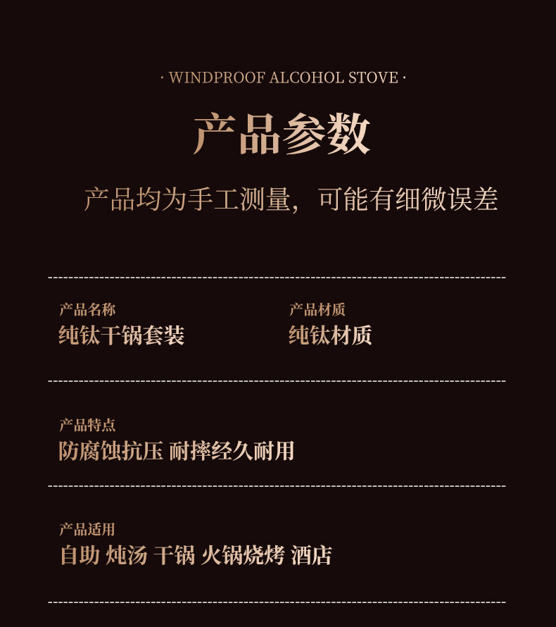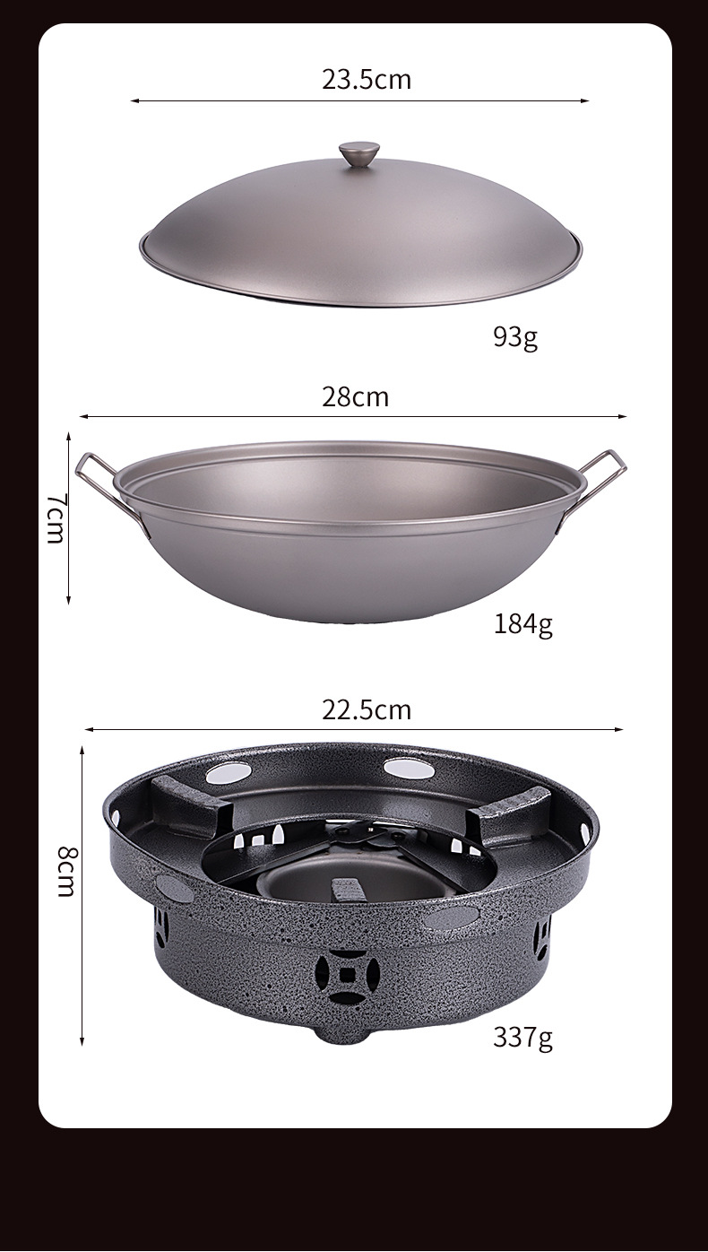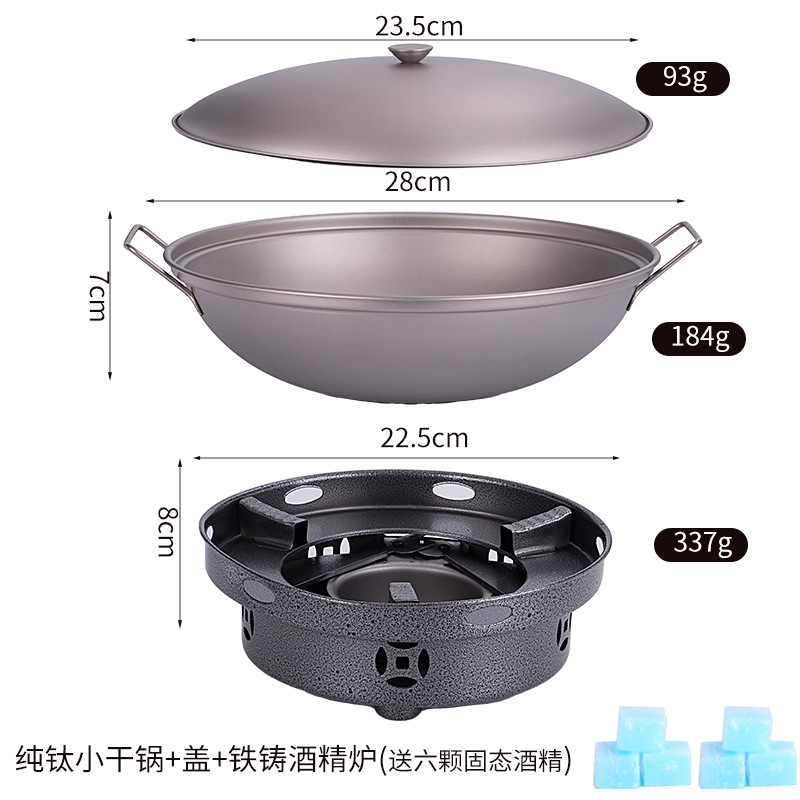 • 순수 티타늄 건조 냄비 + 뚜껑 + 알코올 스토브