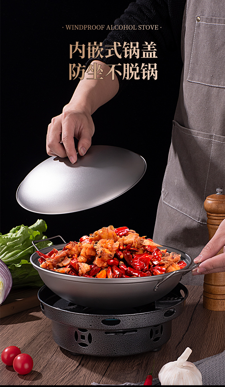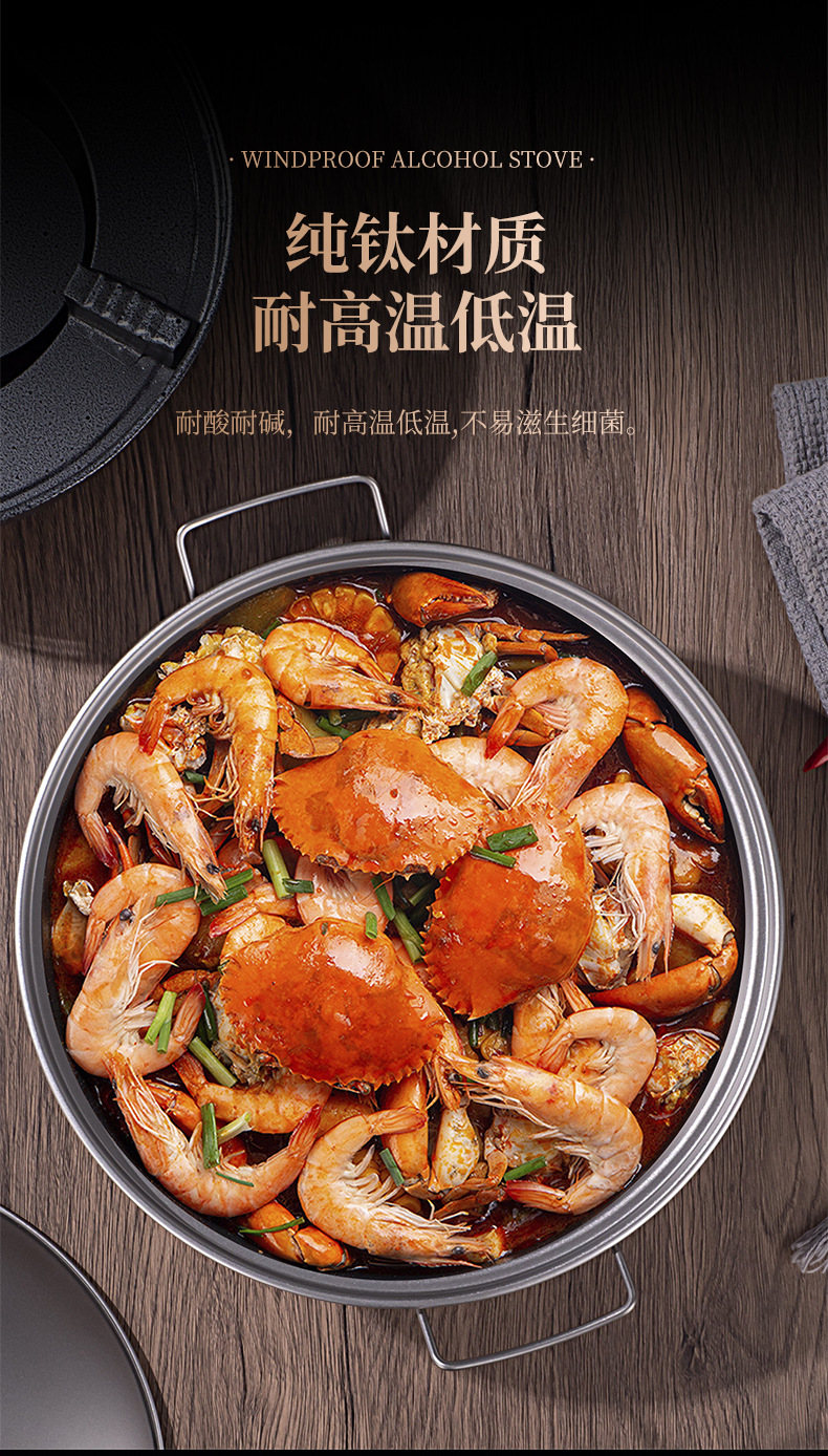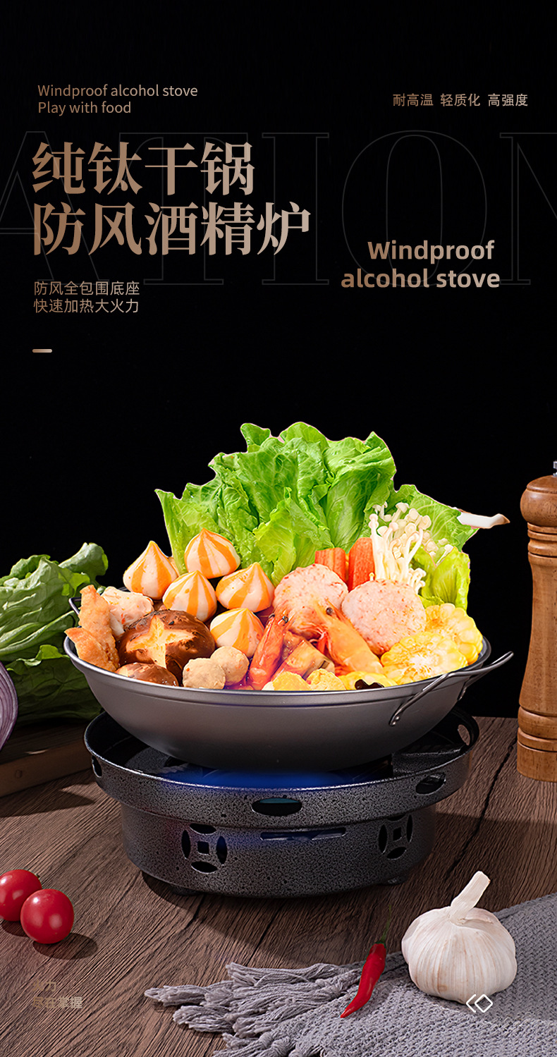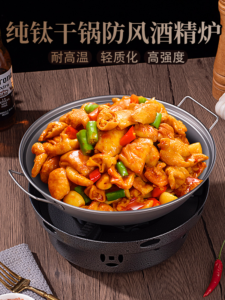 순수 티타늄 야외 작은 건조 냄비 가정용 상업용 뜨거운 냄비 가게 마른 냄비 알코올 스토브 화재 캠핑 피크닉 수프 냄비 두 배 귀 빛스토어 가기