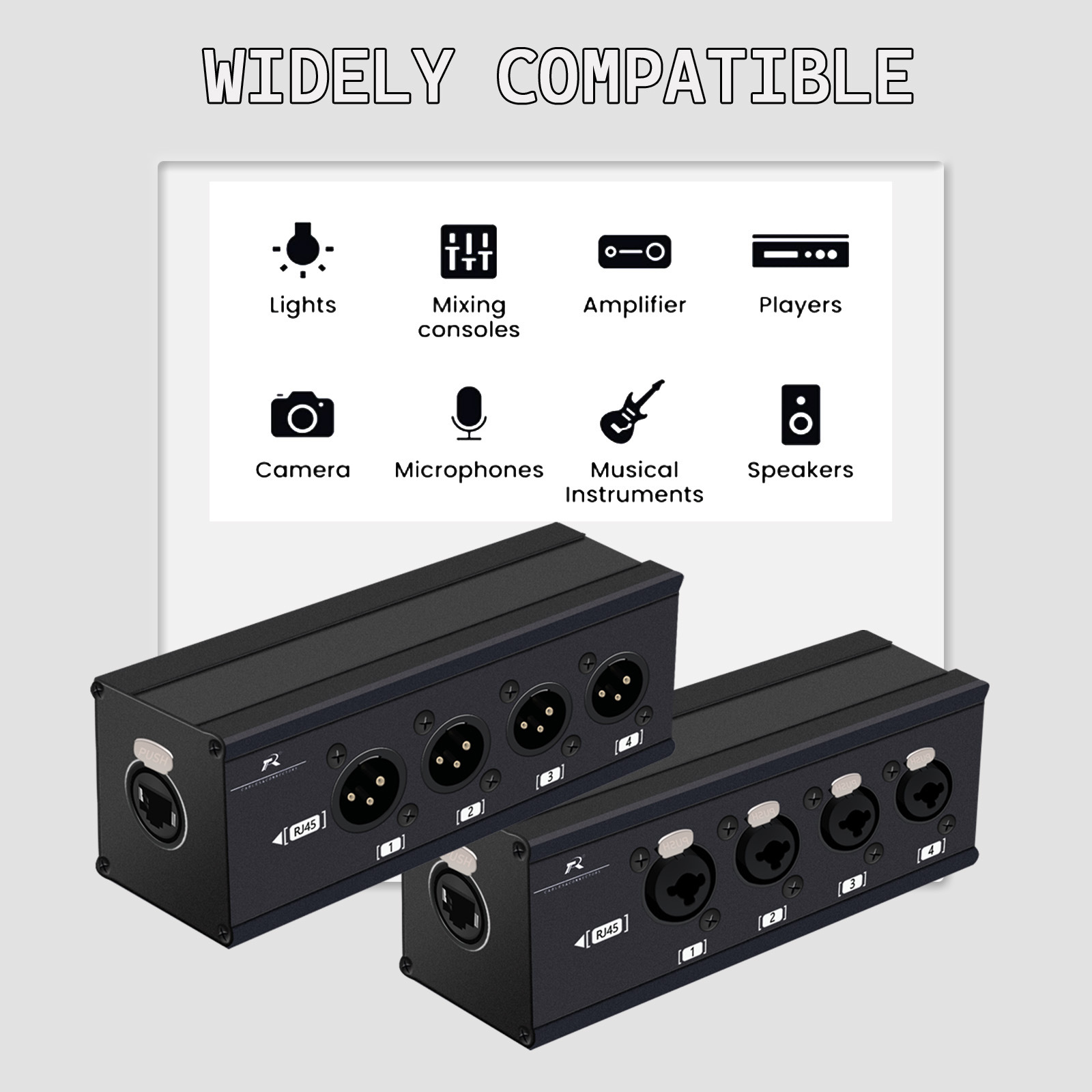 Wide range of applications: Our network cable extenders are lightweight and portable, providing quick equipment configuration for live sound reinforcement, stage or studio recording and lighting, TV and radio, studios, hotels, churches, cruise ships, etc. Plug and play.