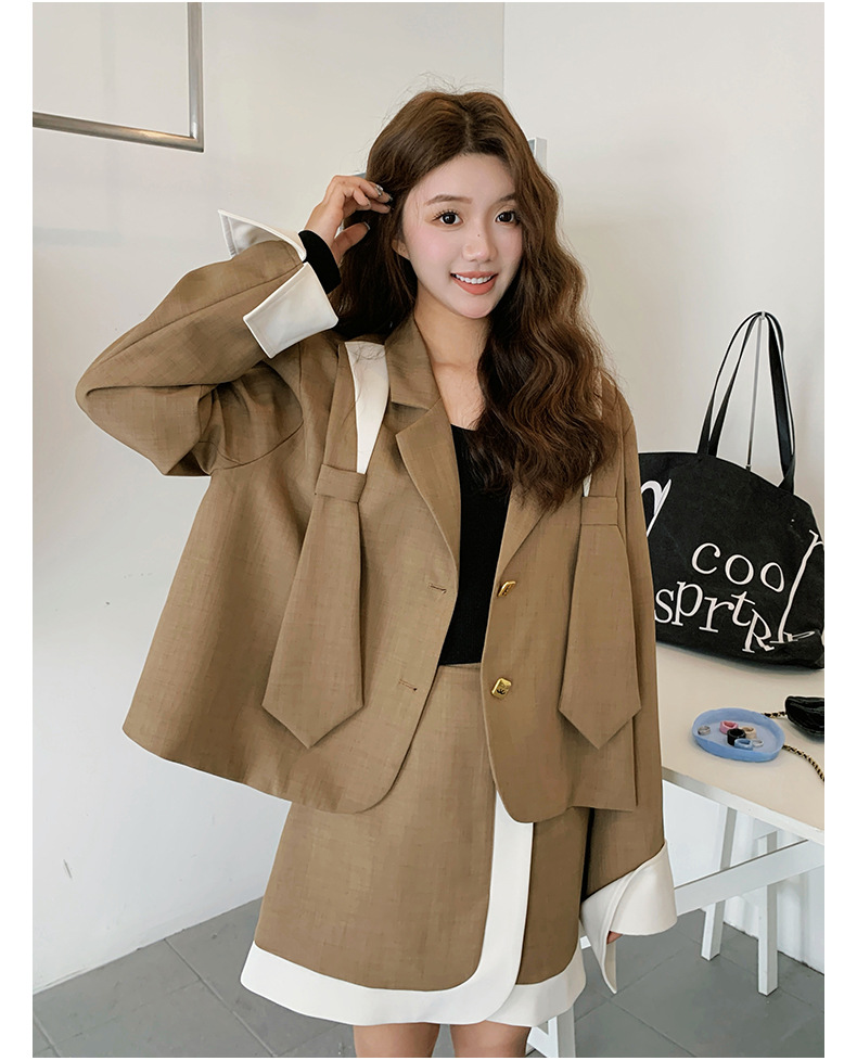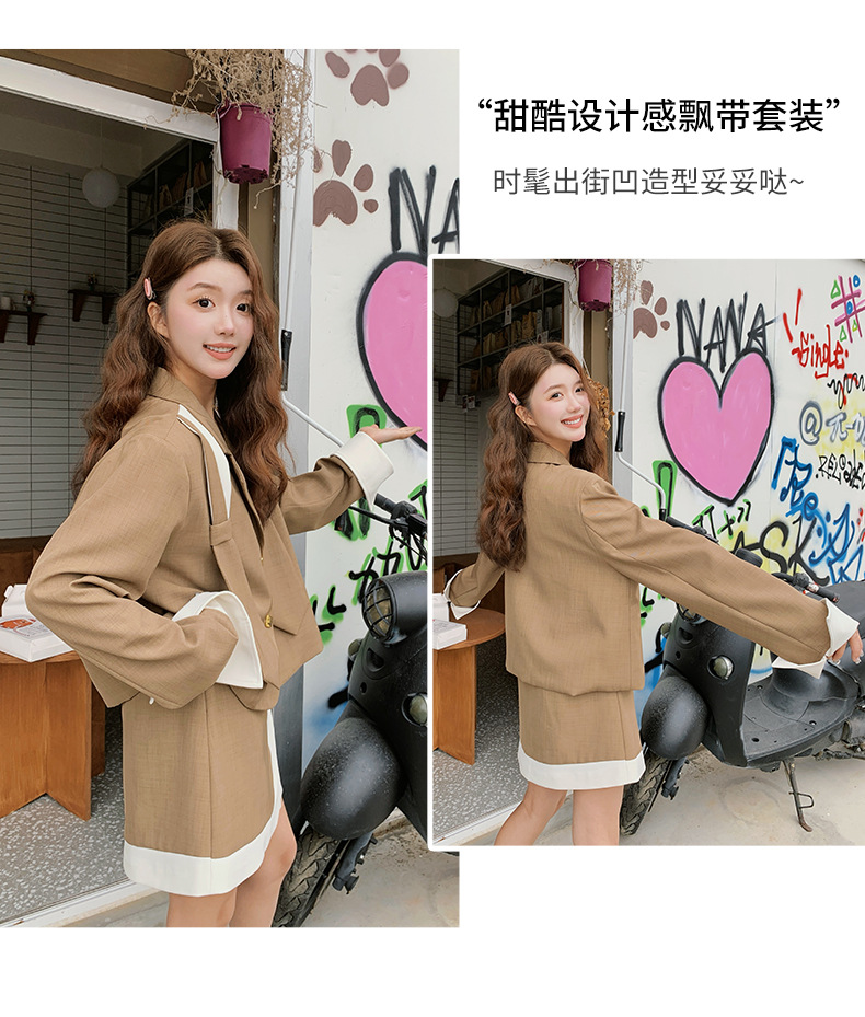 [멩메이] 25 봄 느낌 한국 스타일 디자인 느낌 기질 세트 톱 세트 여성 슬림 A 라인 스커트 투피스 세트