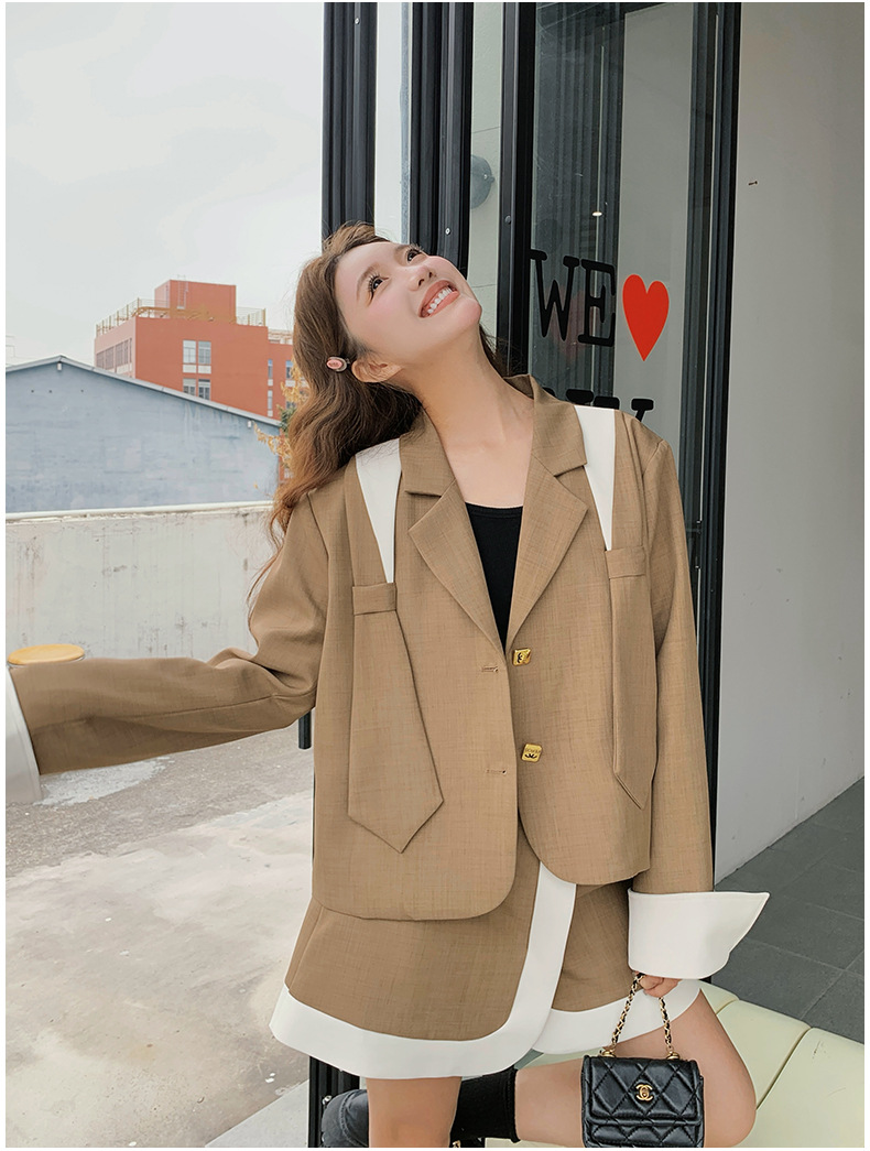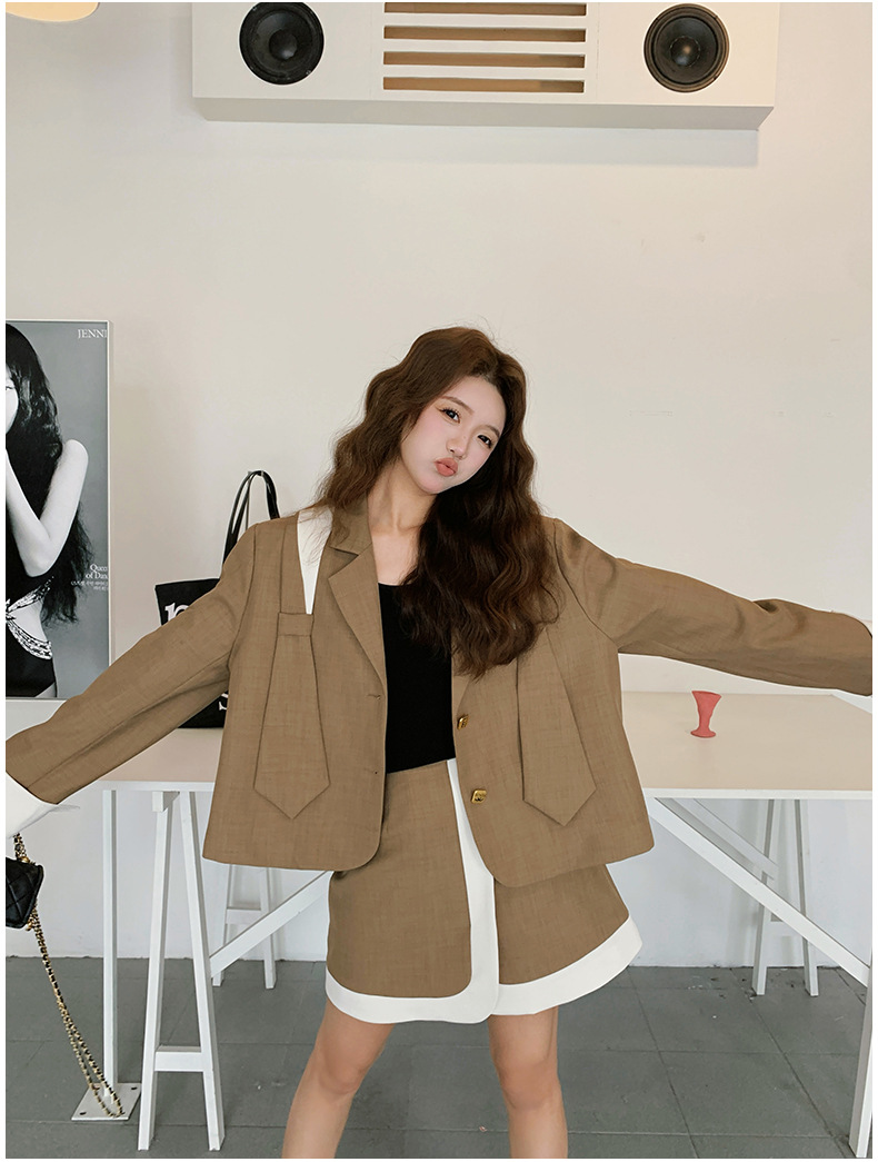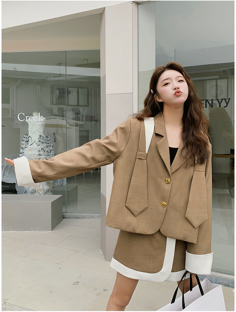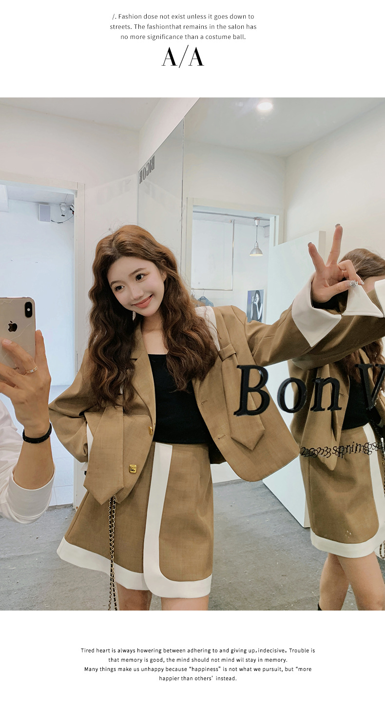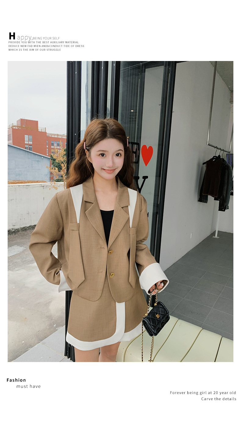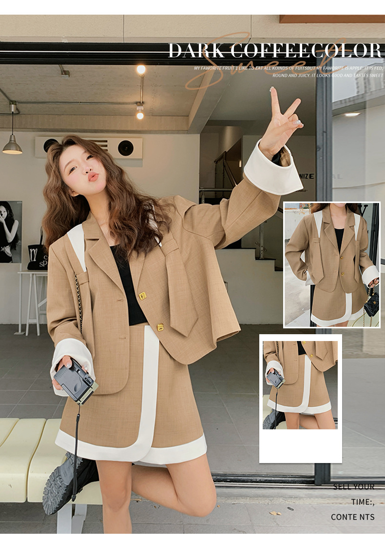 [멩메이] 25 봄 느낌 한국 스타일 디자인 느낌 기질 세트 톱 세트 여성 슬림 A 라인 스커트 투피스 세트스토어 가기
