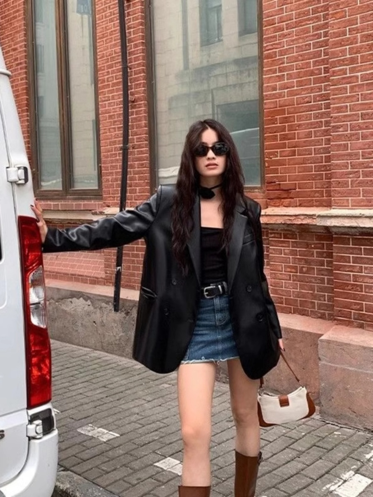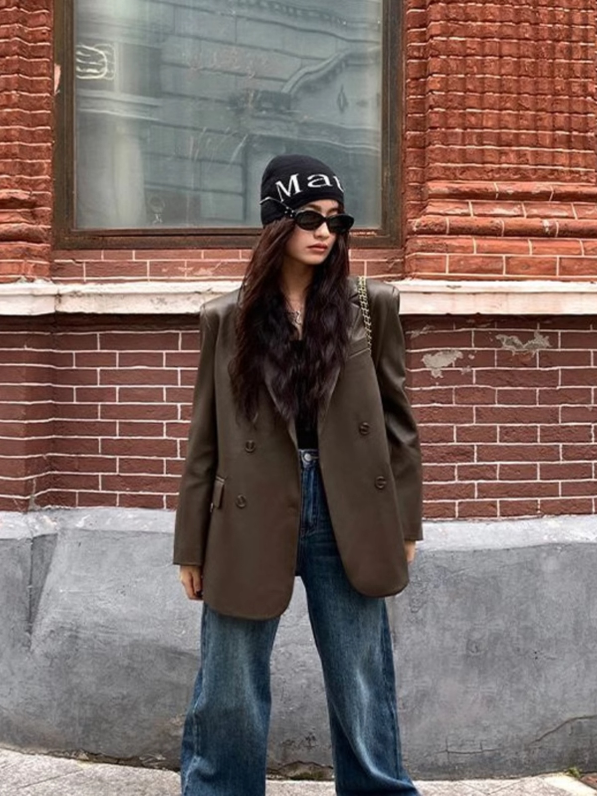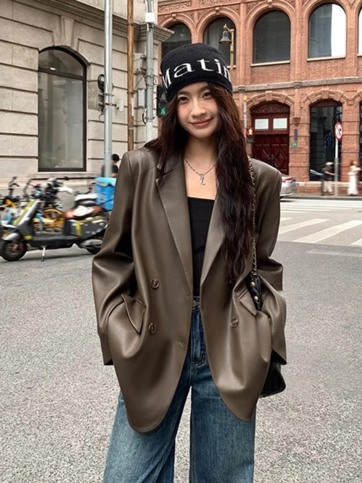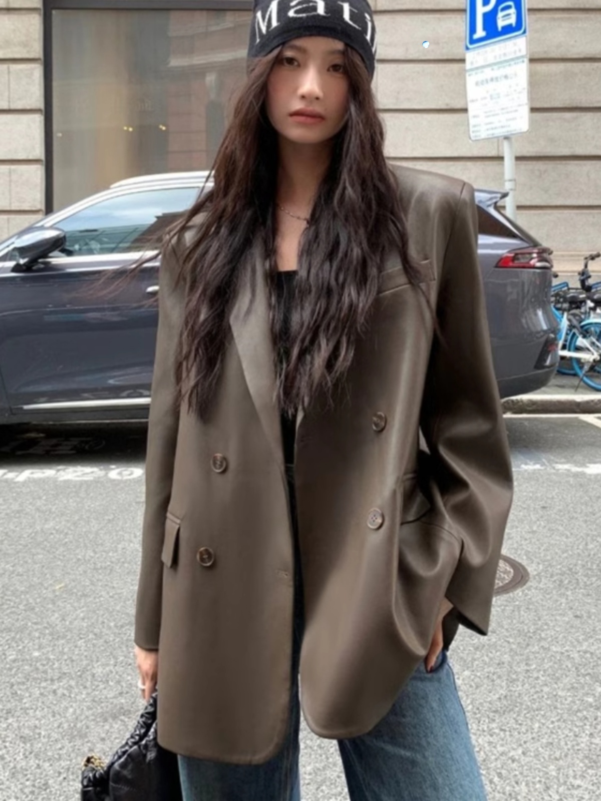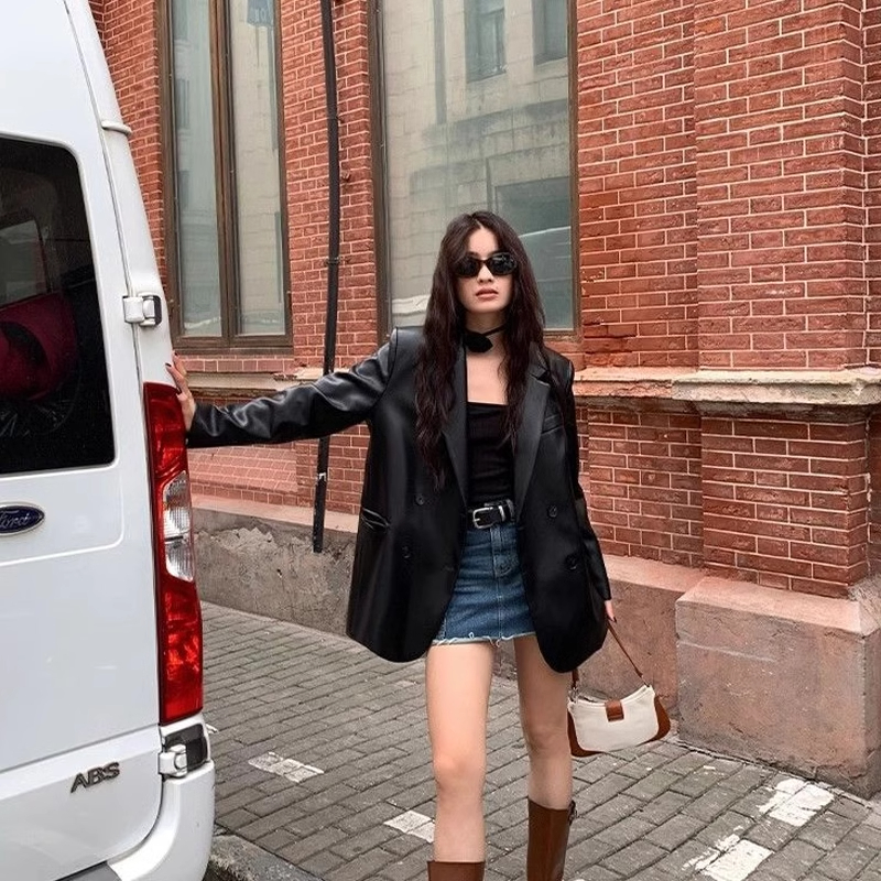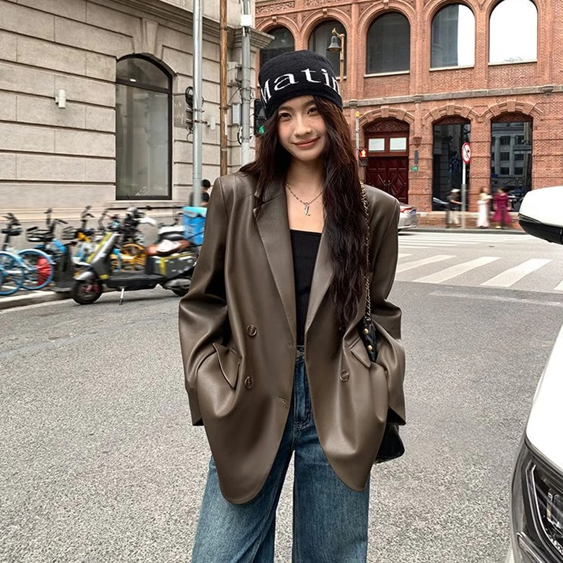 빈티지 가죽 세트 재킷 여성 2025 가을 패션 새로운 느슨한 캐주얼 스타일 탑스토어 가기