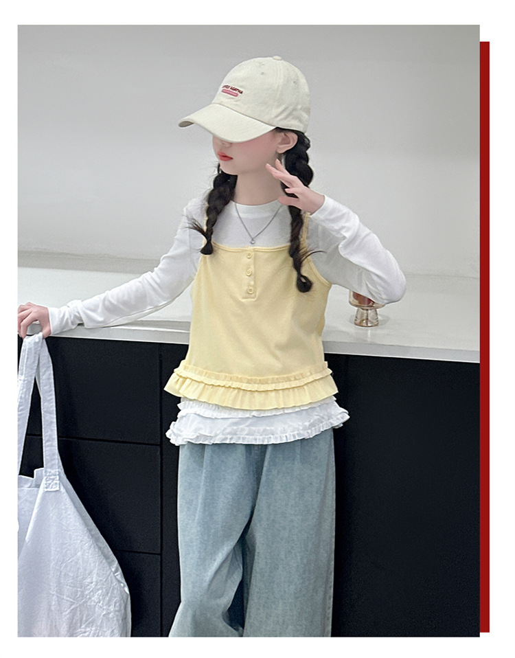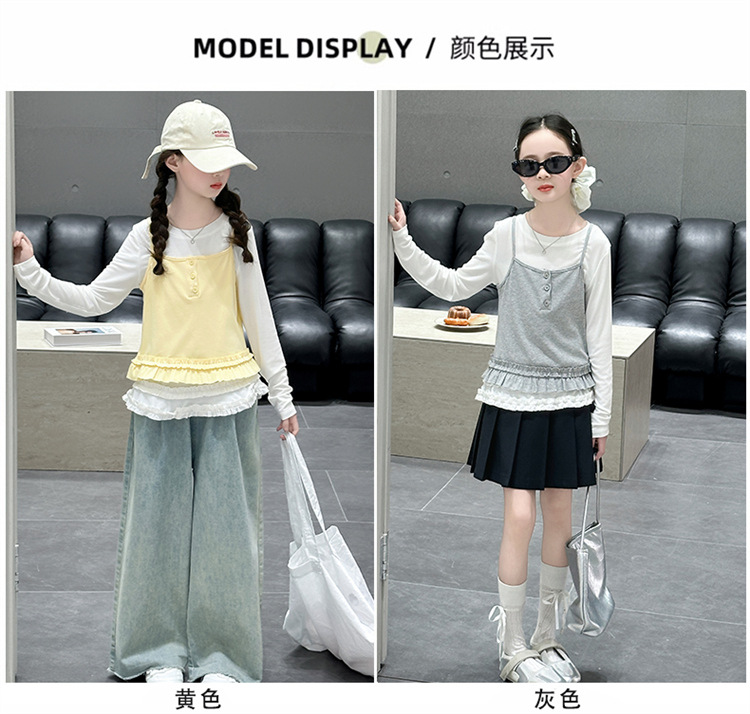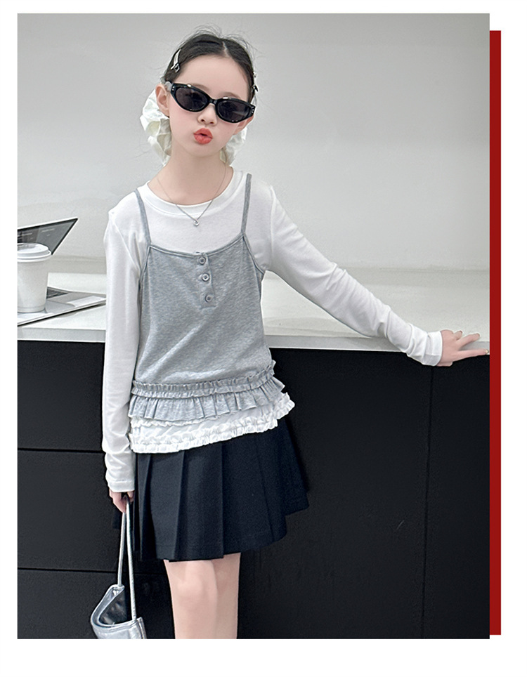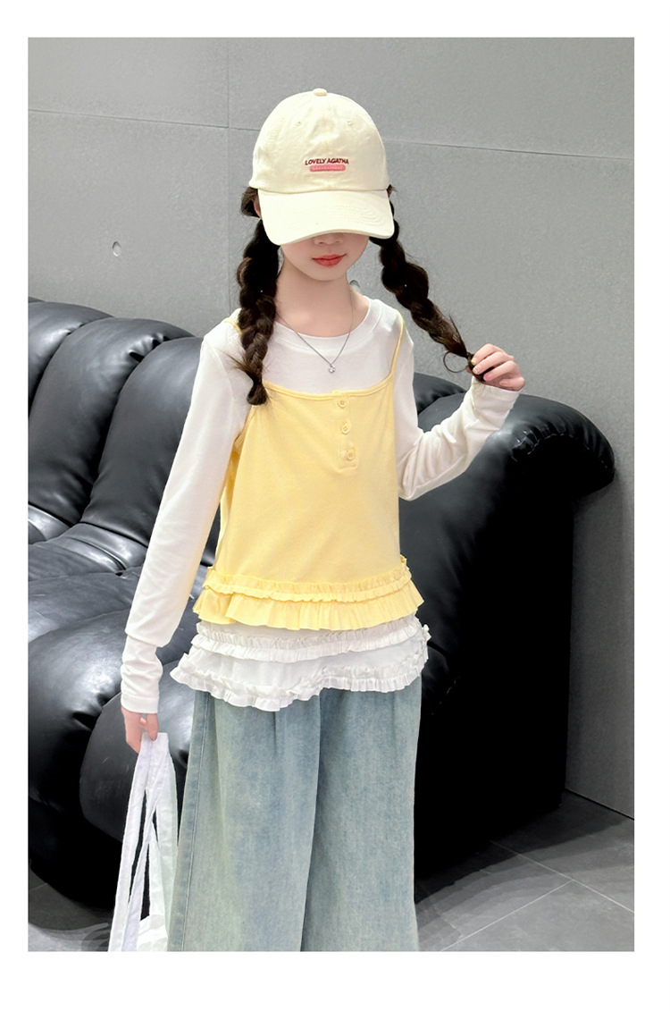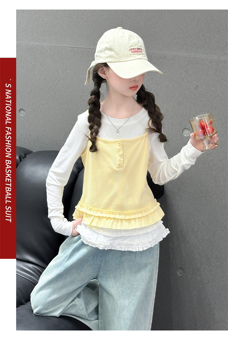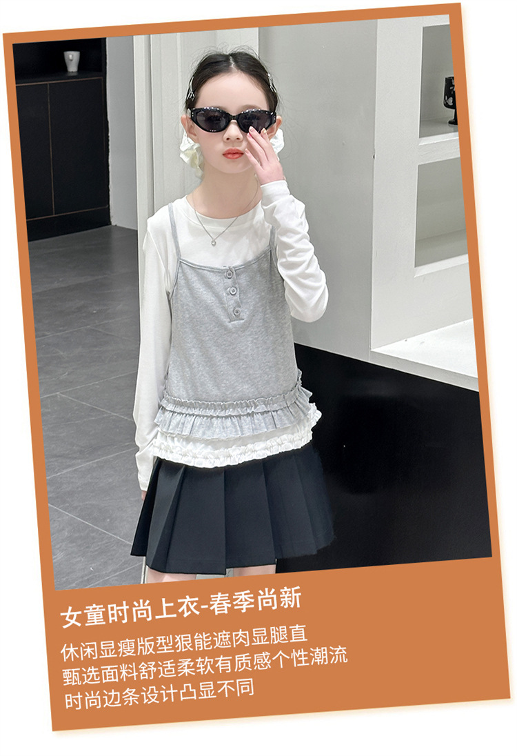 소녀 긴팔 티셔츠 봄과 가을 2025 새로운 스타일 어린이 탑 봄 올 매치 캐주얼 레이스베이스 셔츠스토어 가기