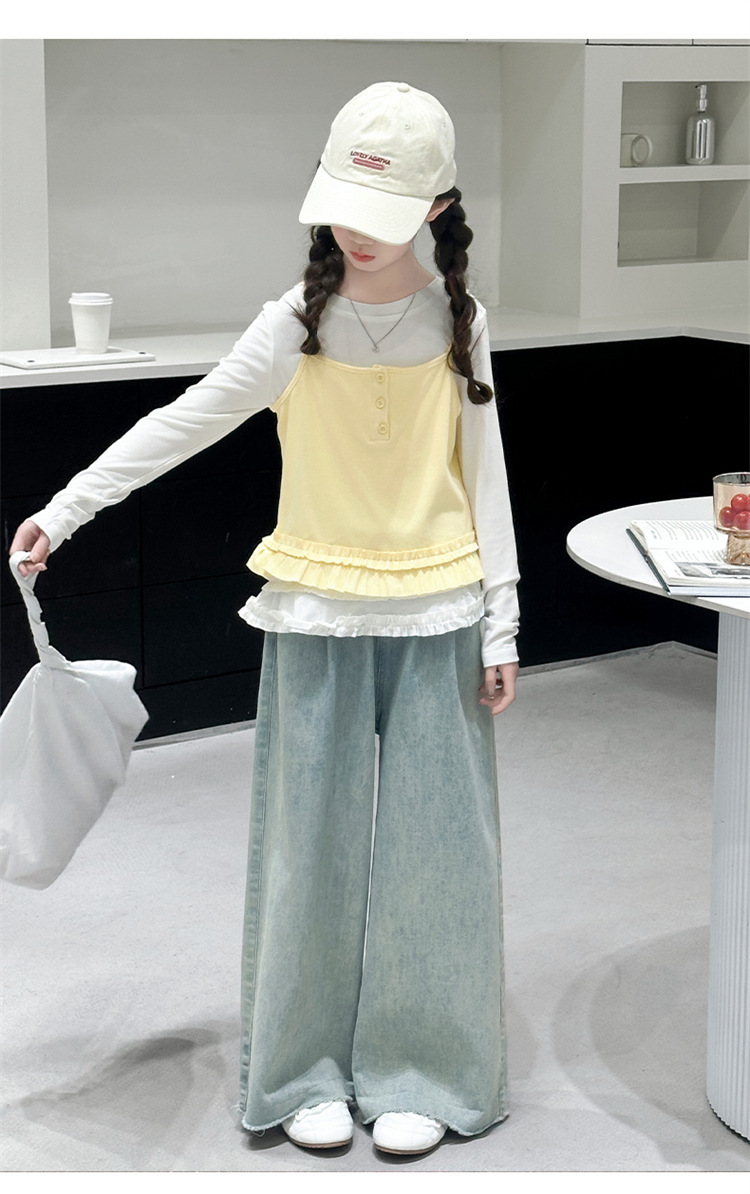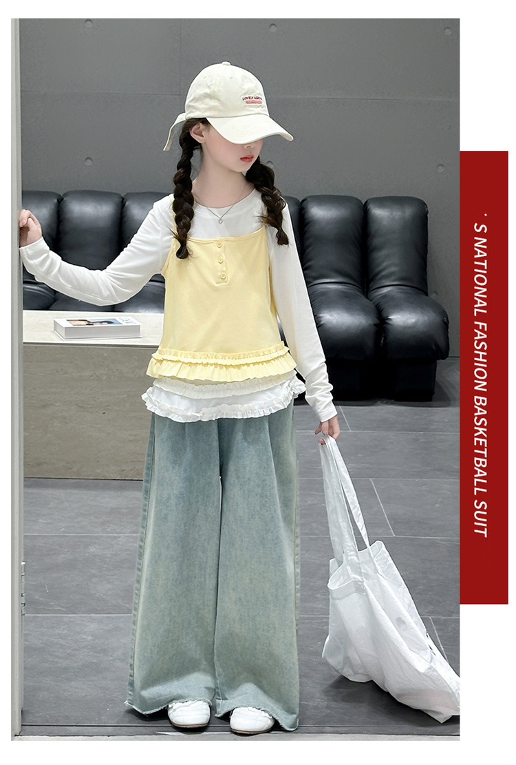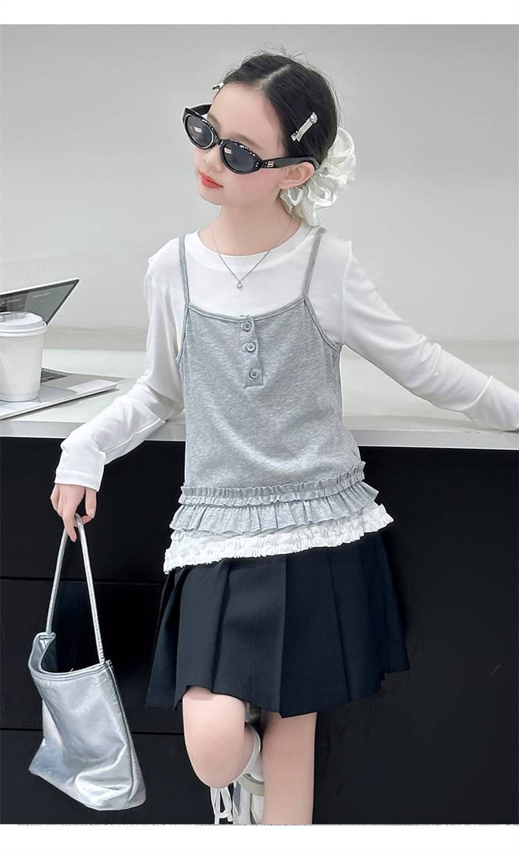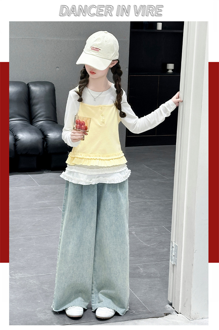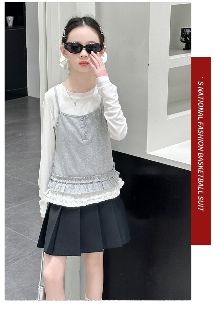 소녀 긴팔 티셔츠 봄과 가을 2025 새로운 스타일 어린이 탑 봄 올 매치 캐주얼 레이스베이스 셔츠스토어 가기