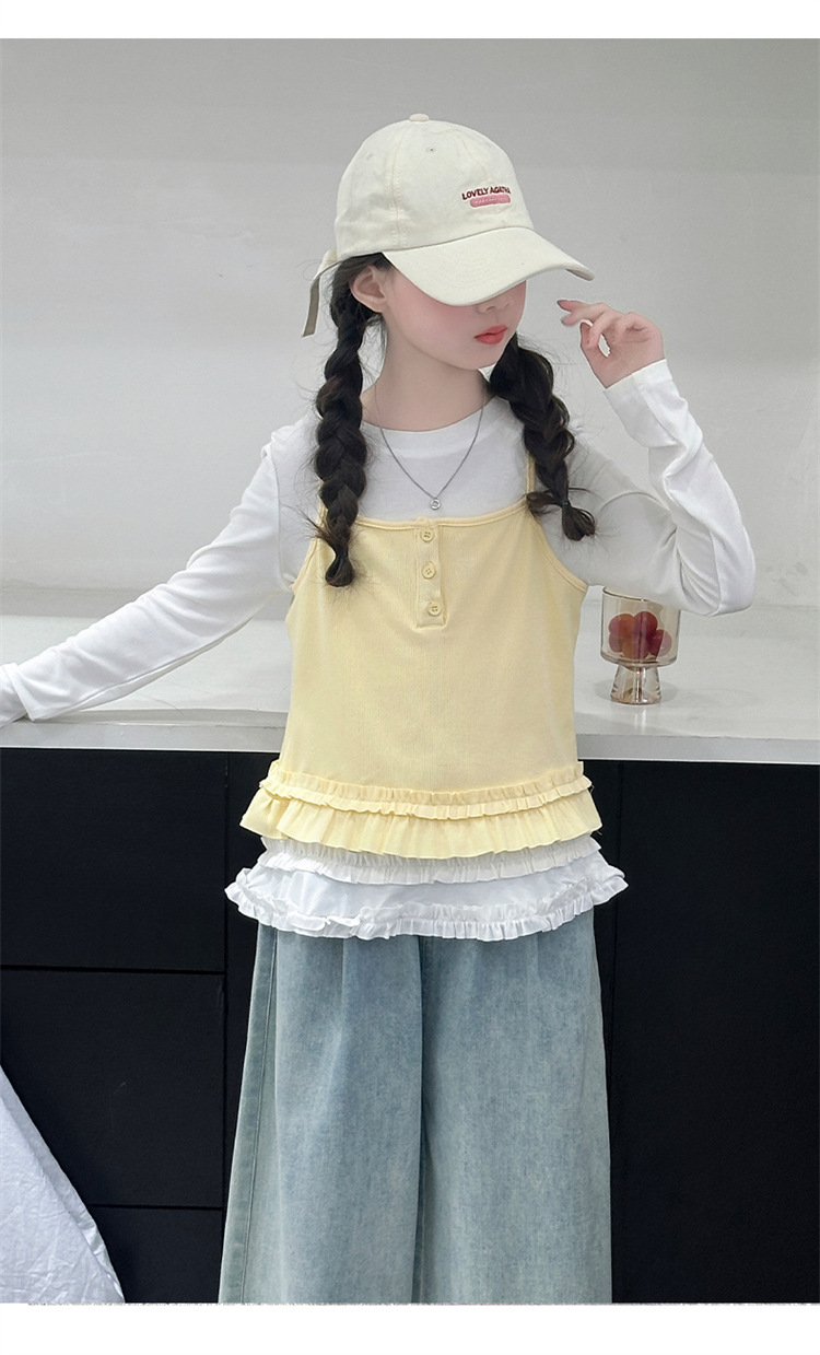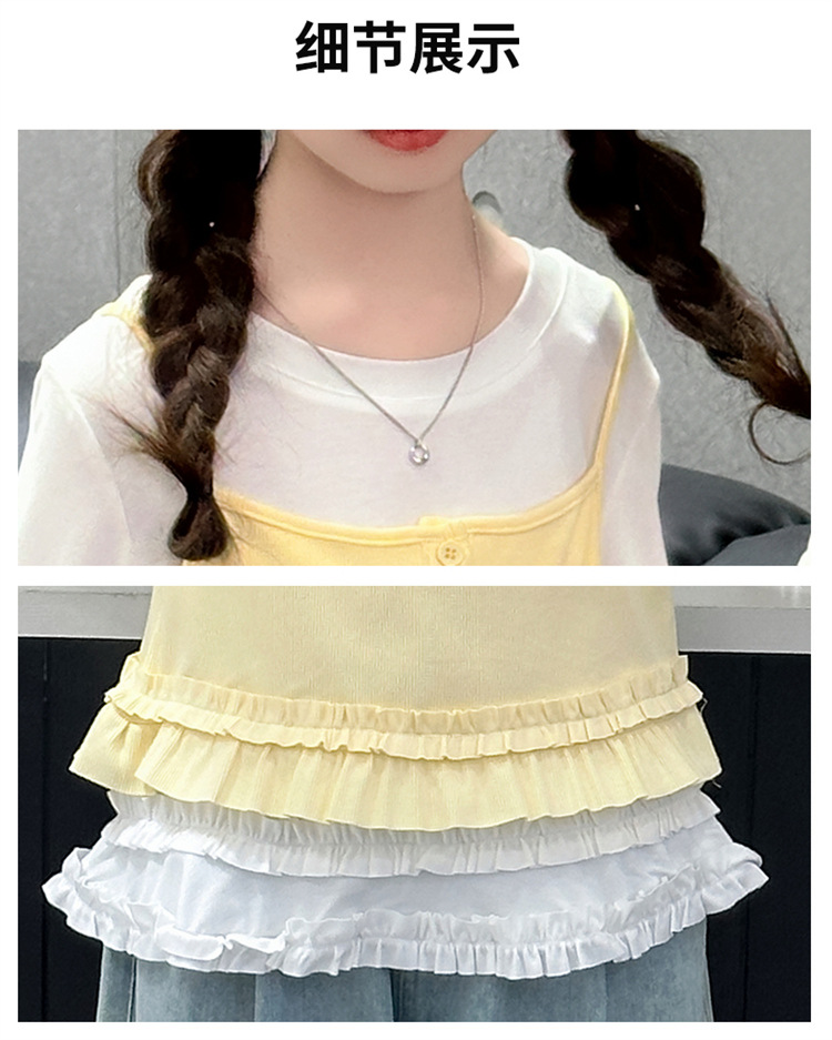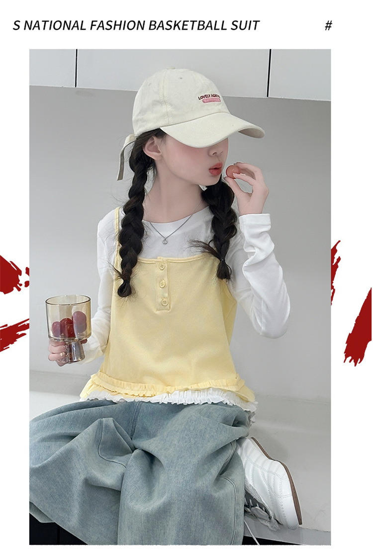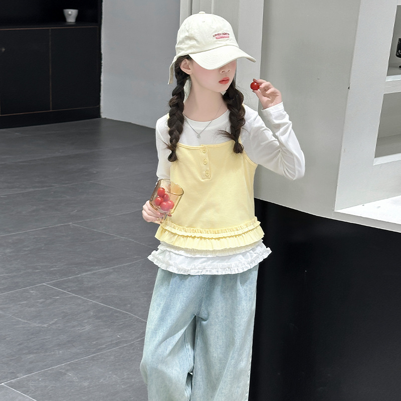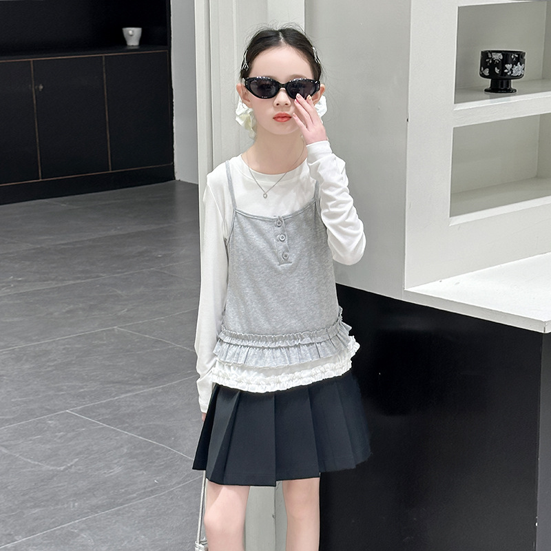 소녀 긴팔 티셔츠 봄과 가을 2025 새로운 스타일 어린이 탑 봄 올 매치 캐주얼 레이스베이스 셔츠