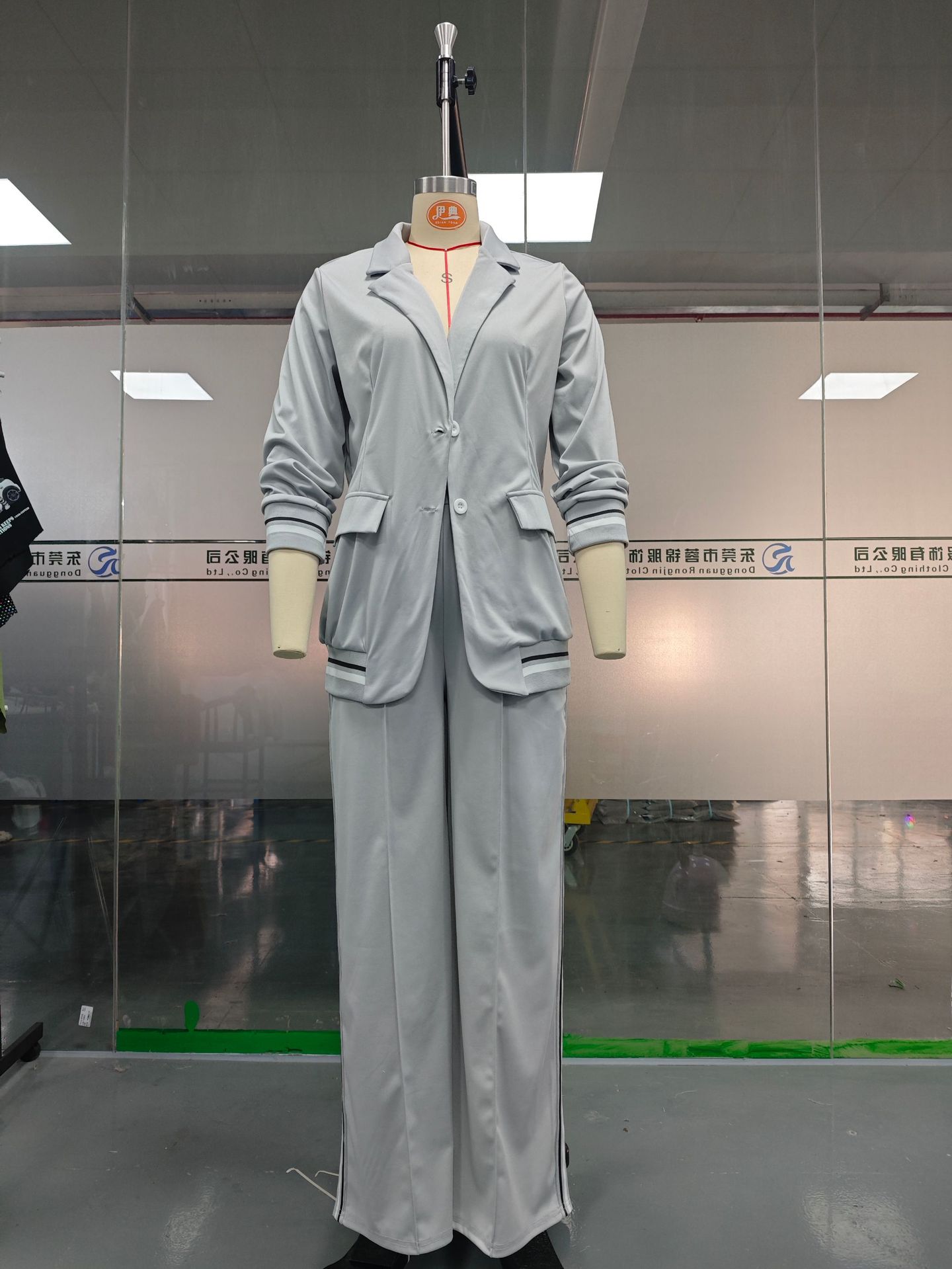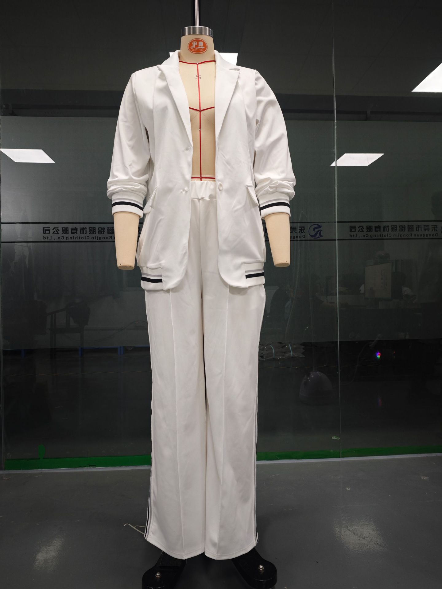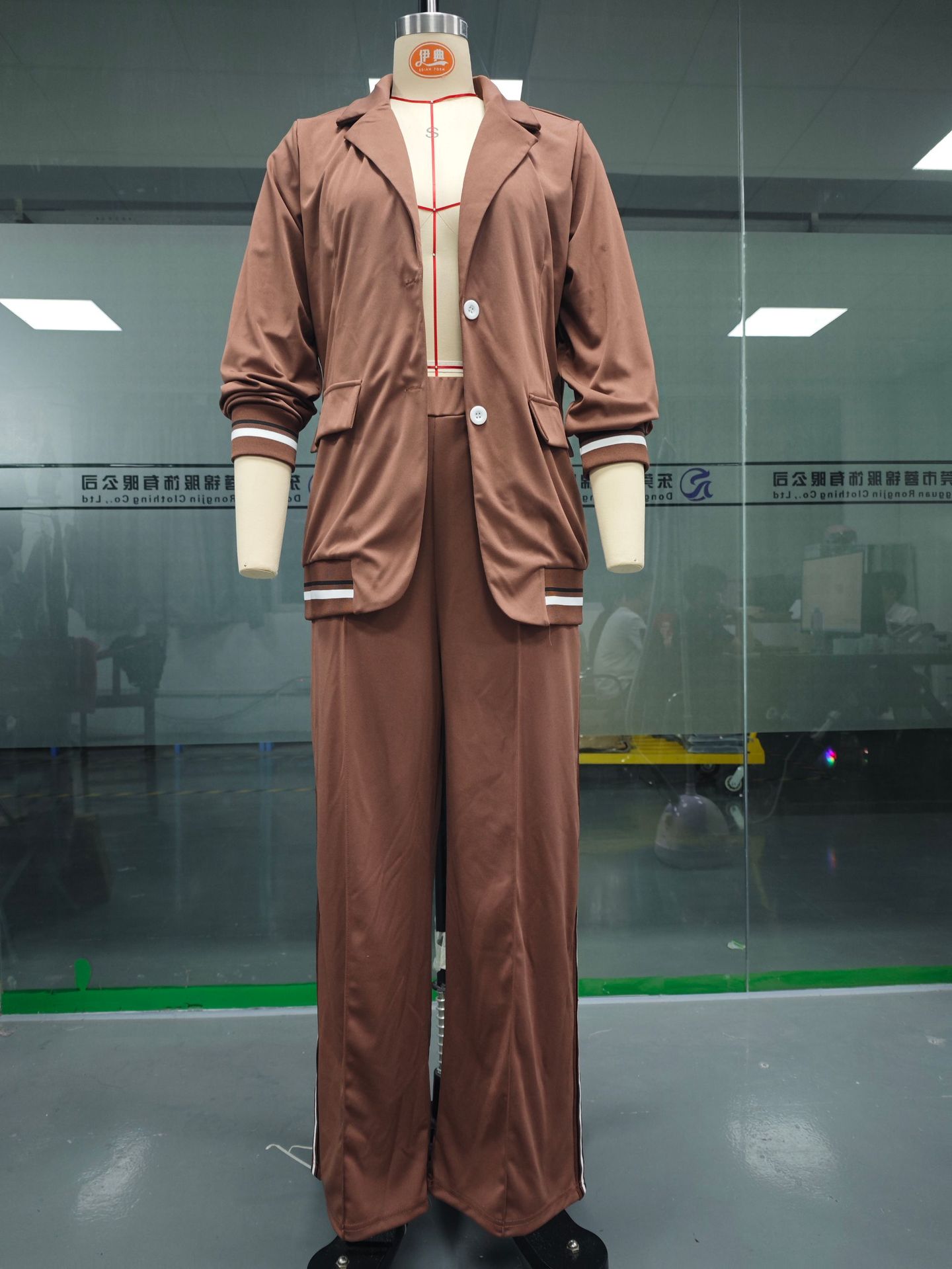 2025 유럽 및 미국 스타일 독립형 패션 여성복 신상 단색 골지 정장 2피스 세트, 우아한 출퇴근 및 캐주얼 스타일스토어 가기