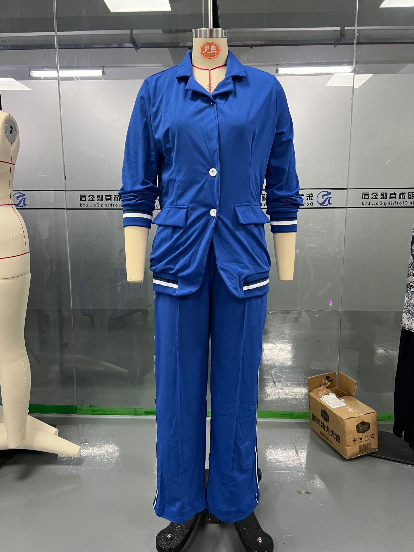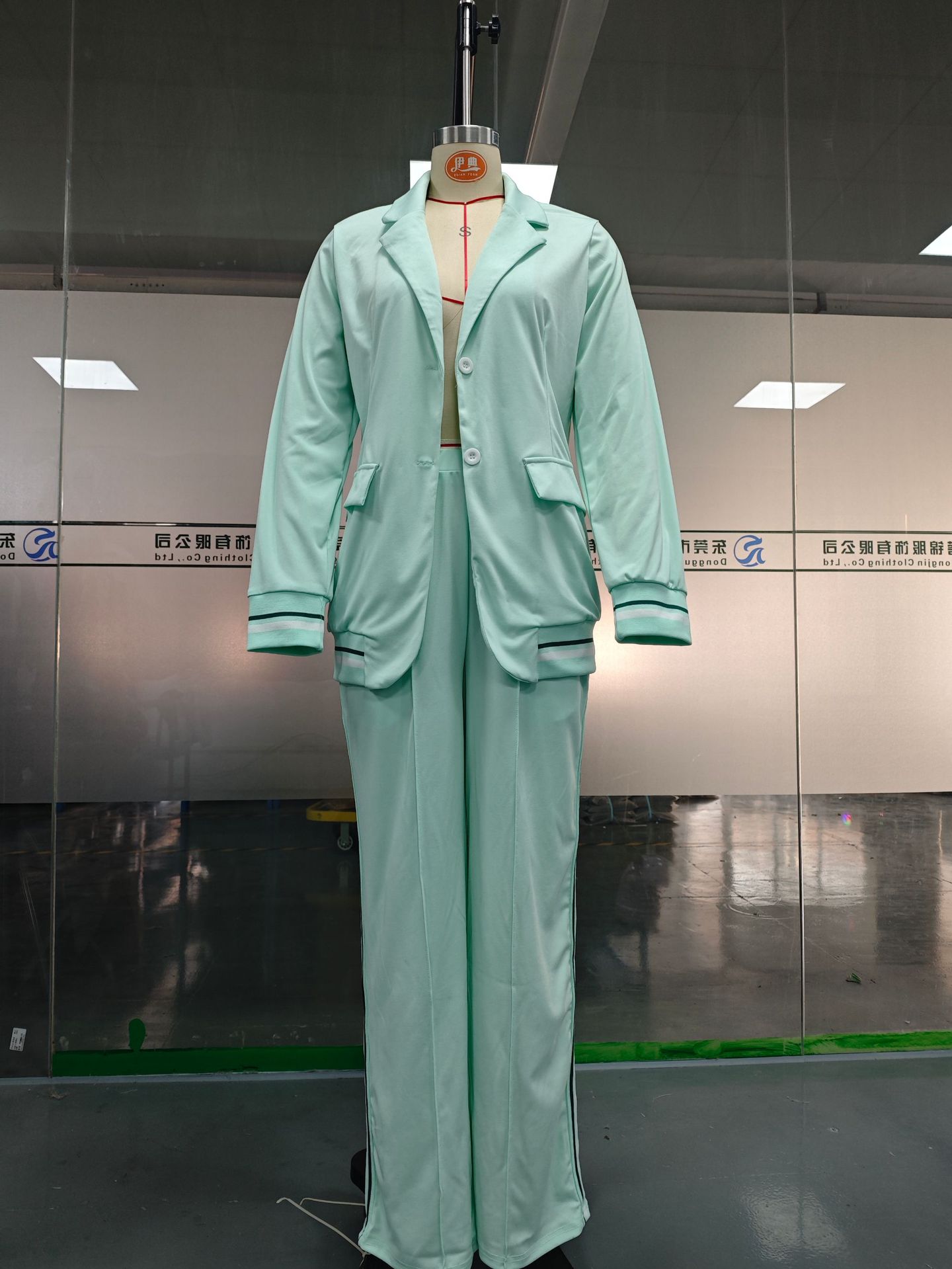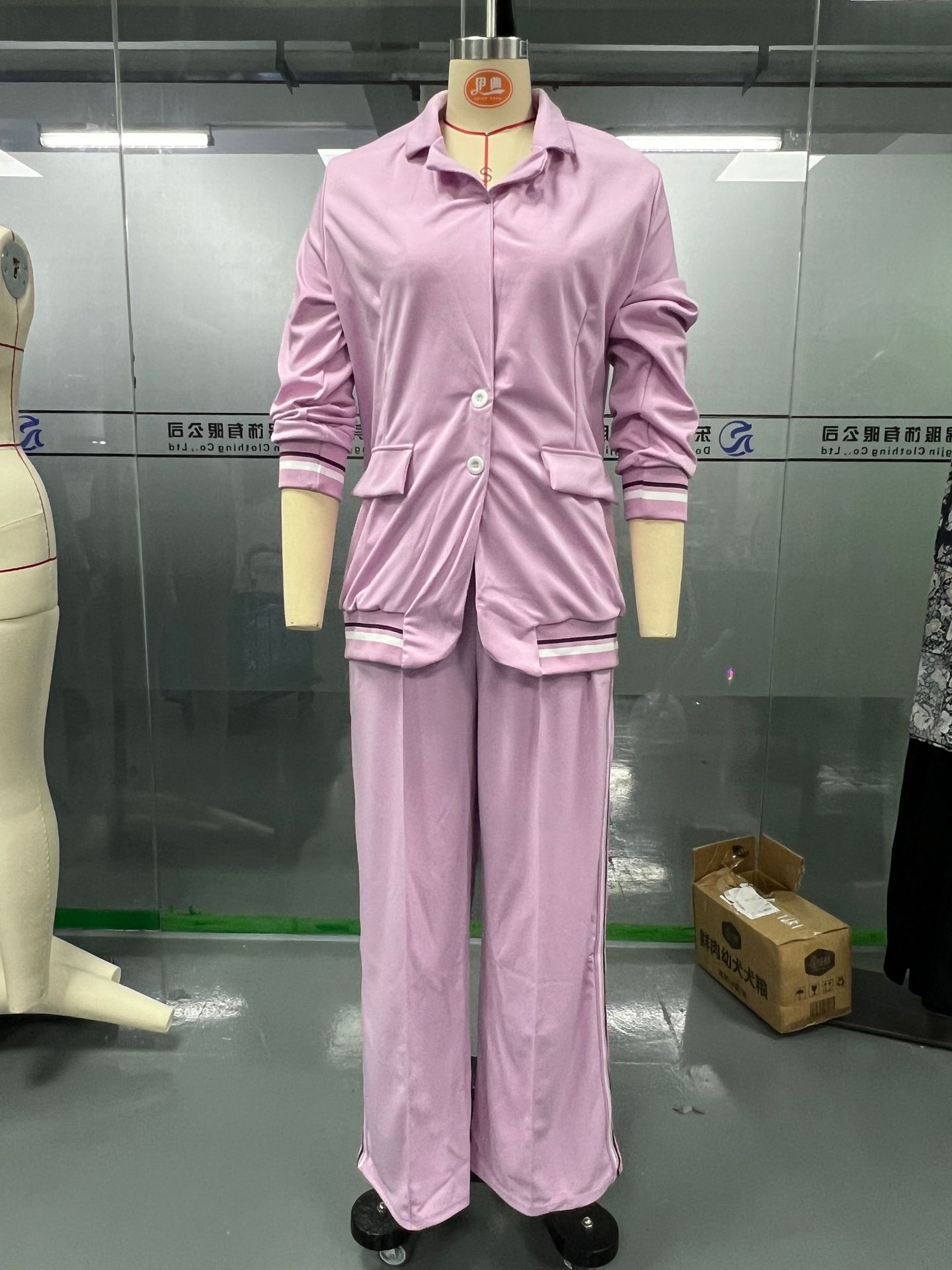 2025 유럽 및 미국 스타일 독립형 패션 여성복 신상 단색 골지 정장 2피스 세트, 우아한 출퇴근 및 캐주얼 스타일스토어 가기
