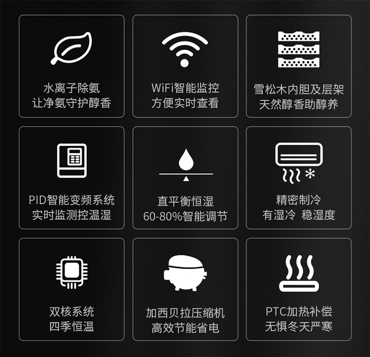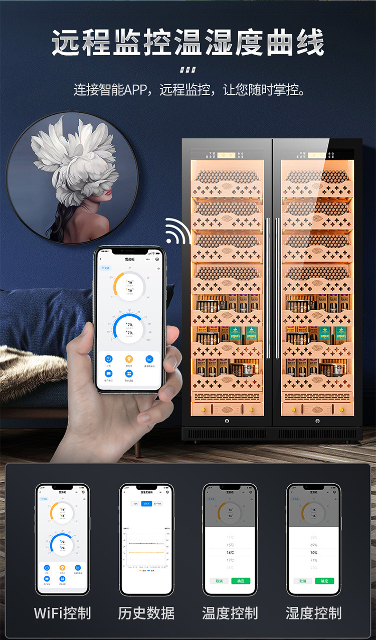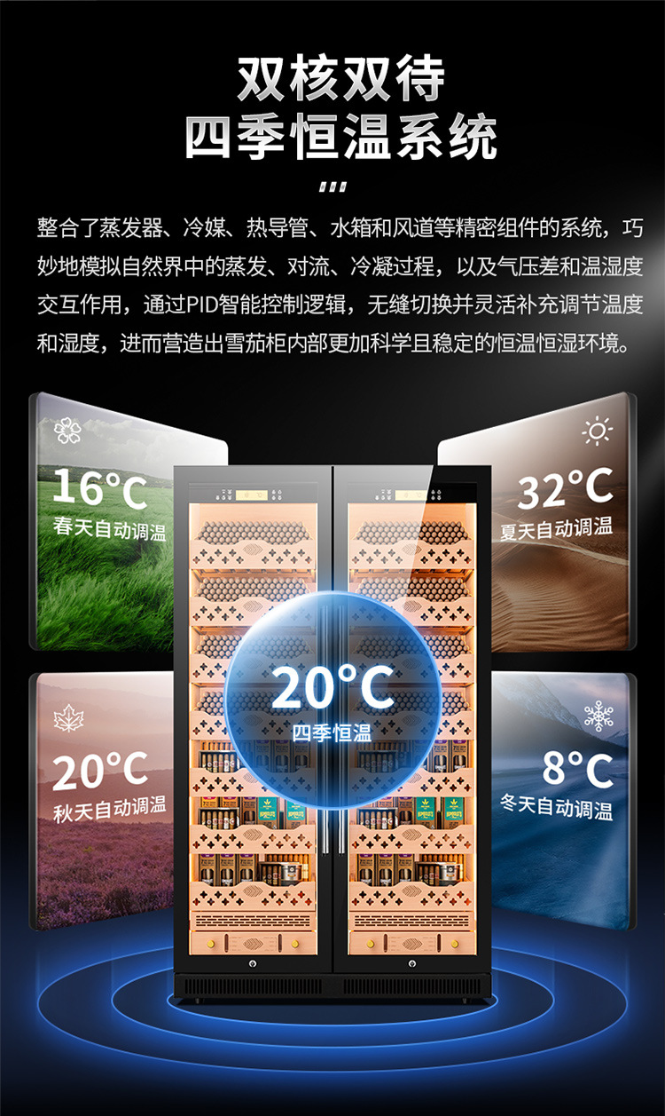 가지 용 CL-320C 시가 캐비닛 지능형 일정한 온도 및 습도 삼나무 라이너 그물 암모니아 알코올 영양 이중 온도 이중 시스템스토어 가기