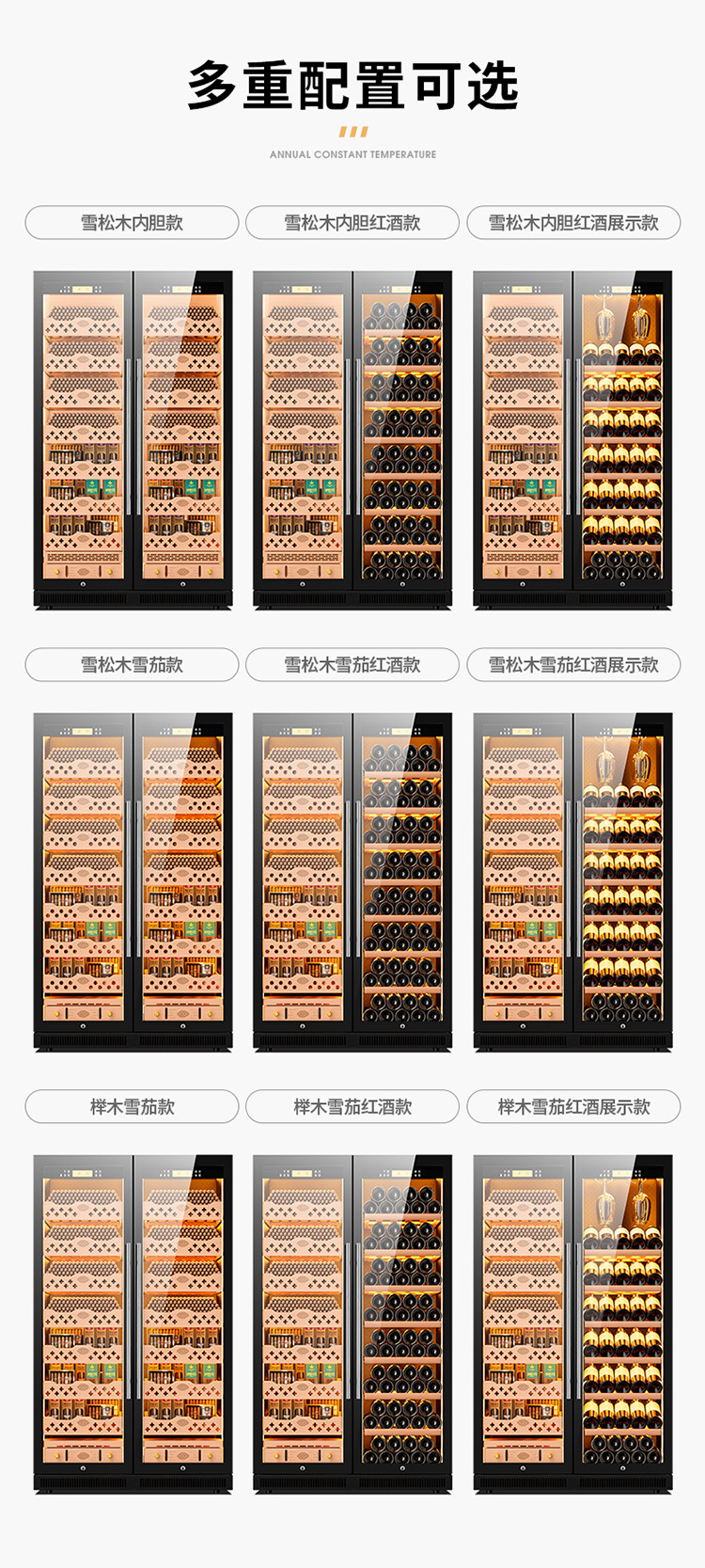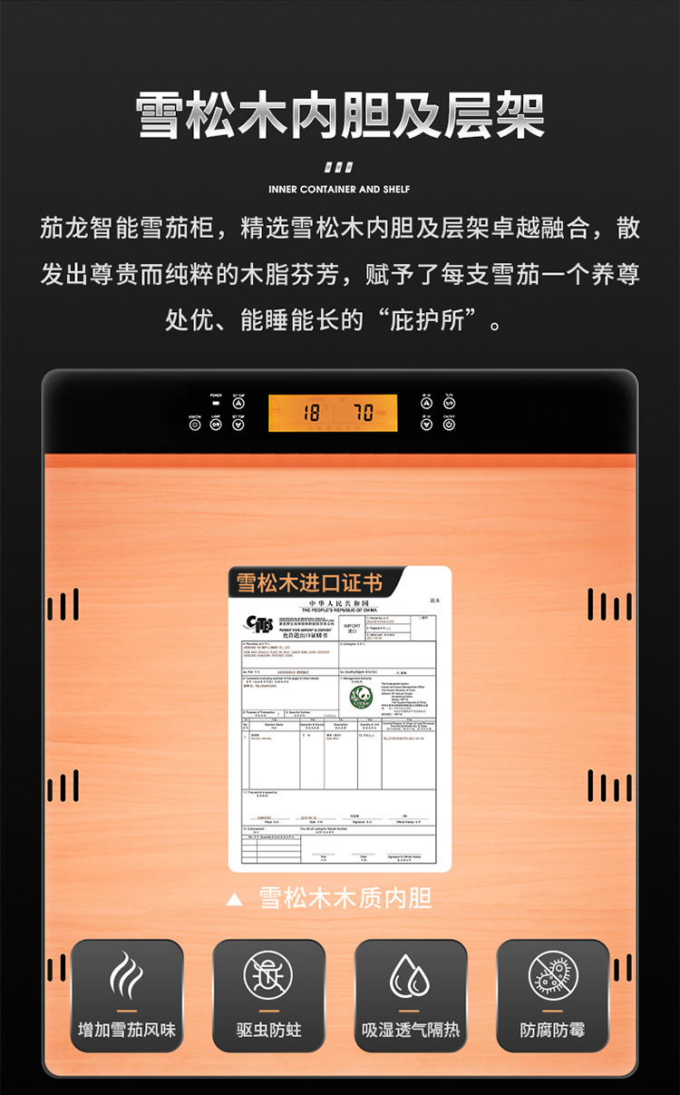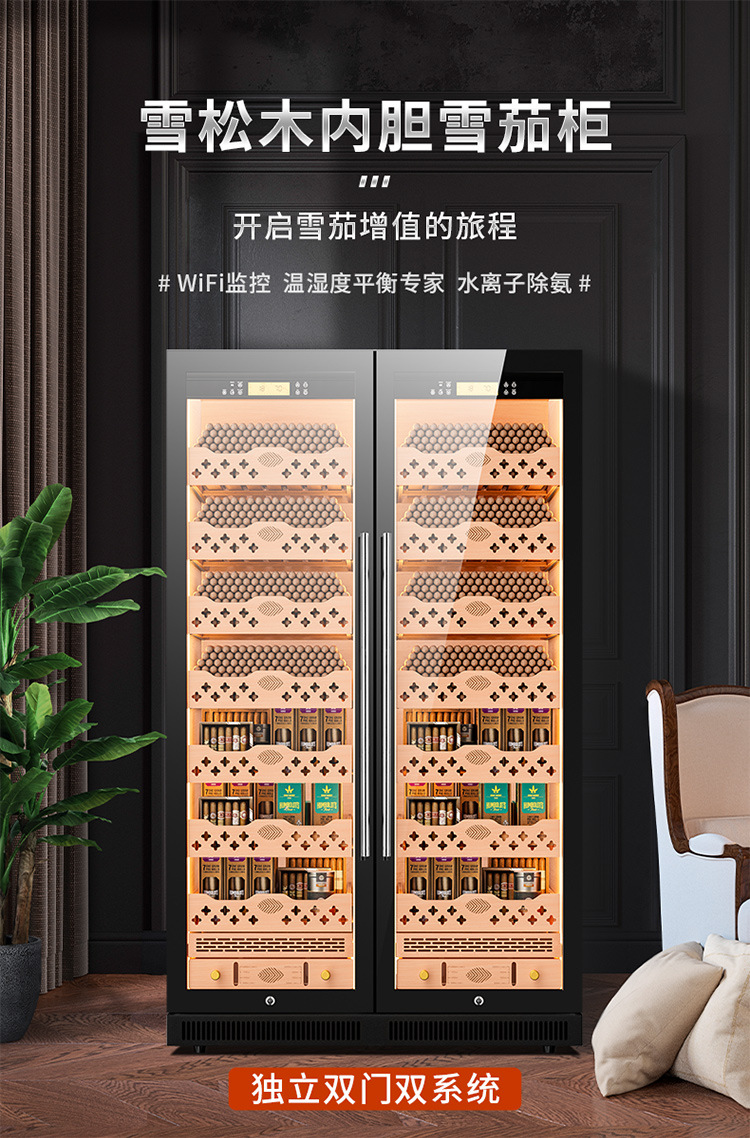 가지 용 CL-320C 시가 캐비닛 지능형 일정한 온도 및 습도 삼나무 라이너 그물 암모니아 알코올 영양 이중 온도 이중 시스템