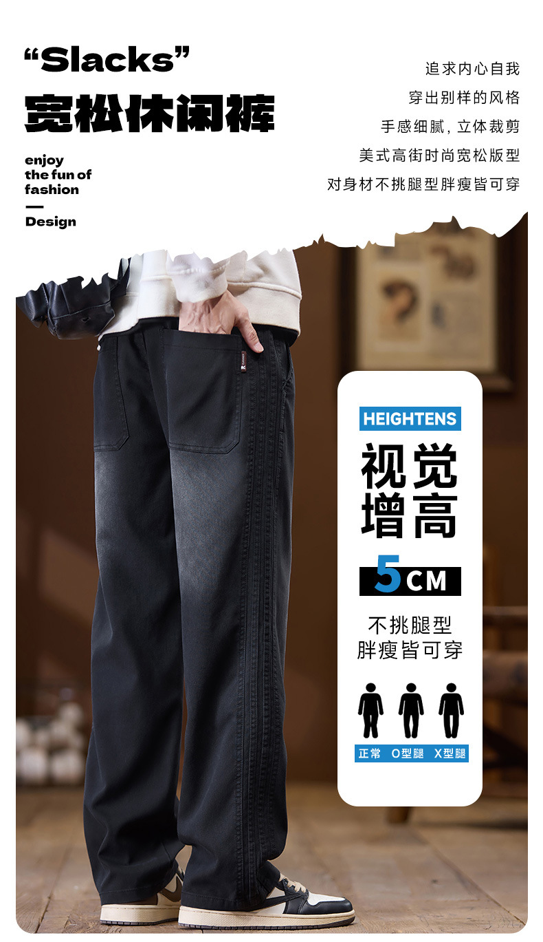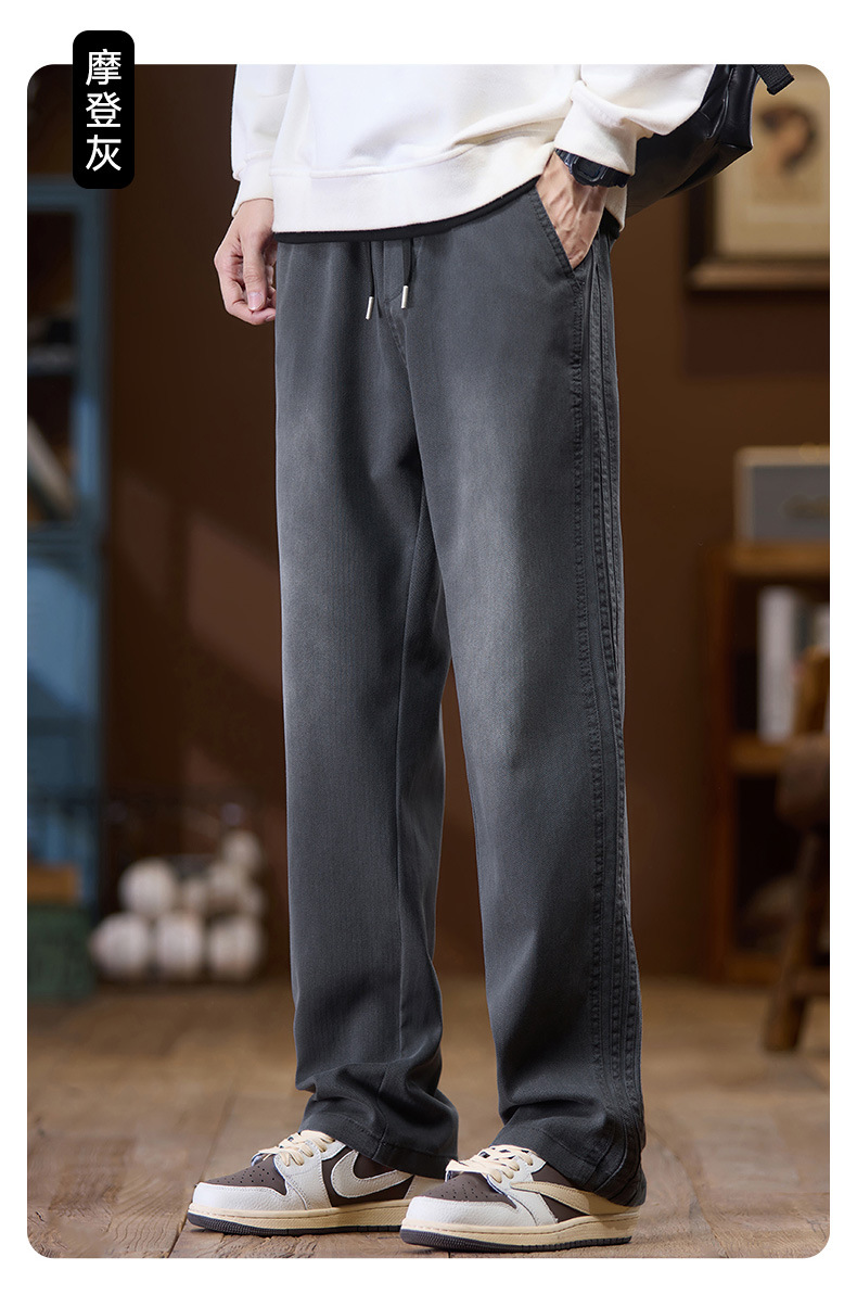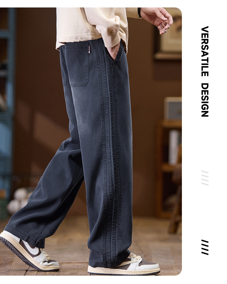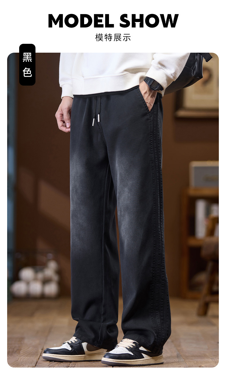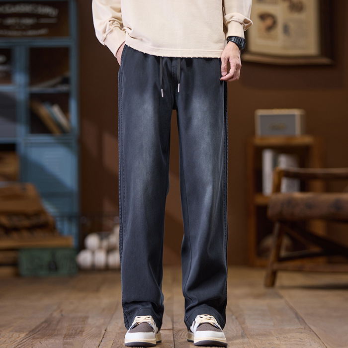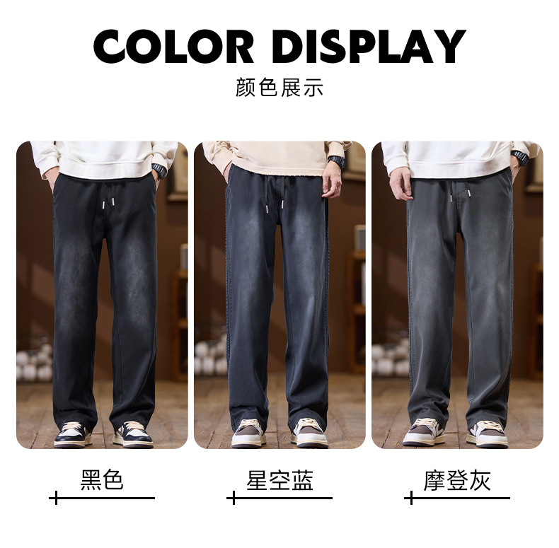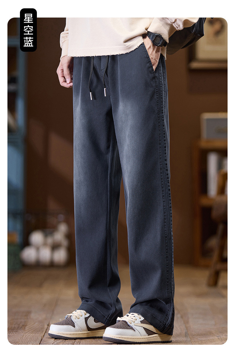 2024 봄/여름 남성 캐주얼 팬츠, 아메리칸 스타일 트렌디 브랜드, 하이 스트리트 루즈핏 스트레이트 와이드 팬츠, 만능 스타일, 스타리 블루 팬츠스토어 가기