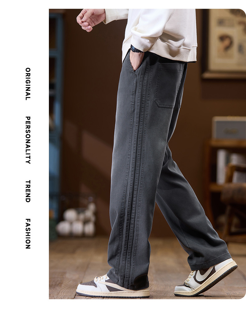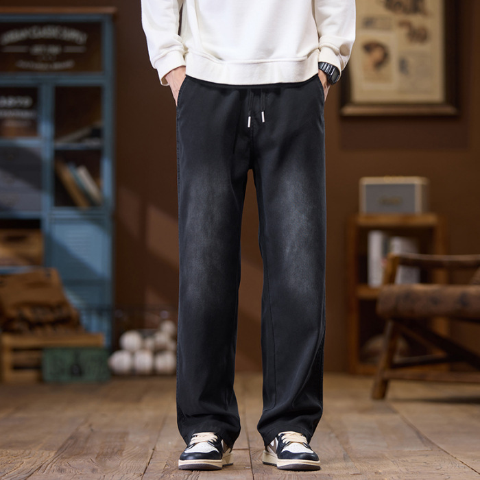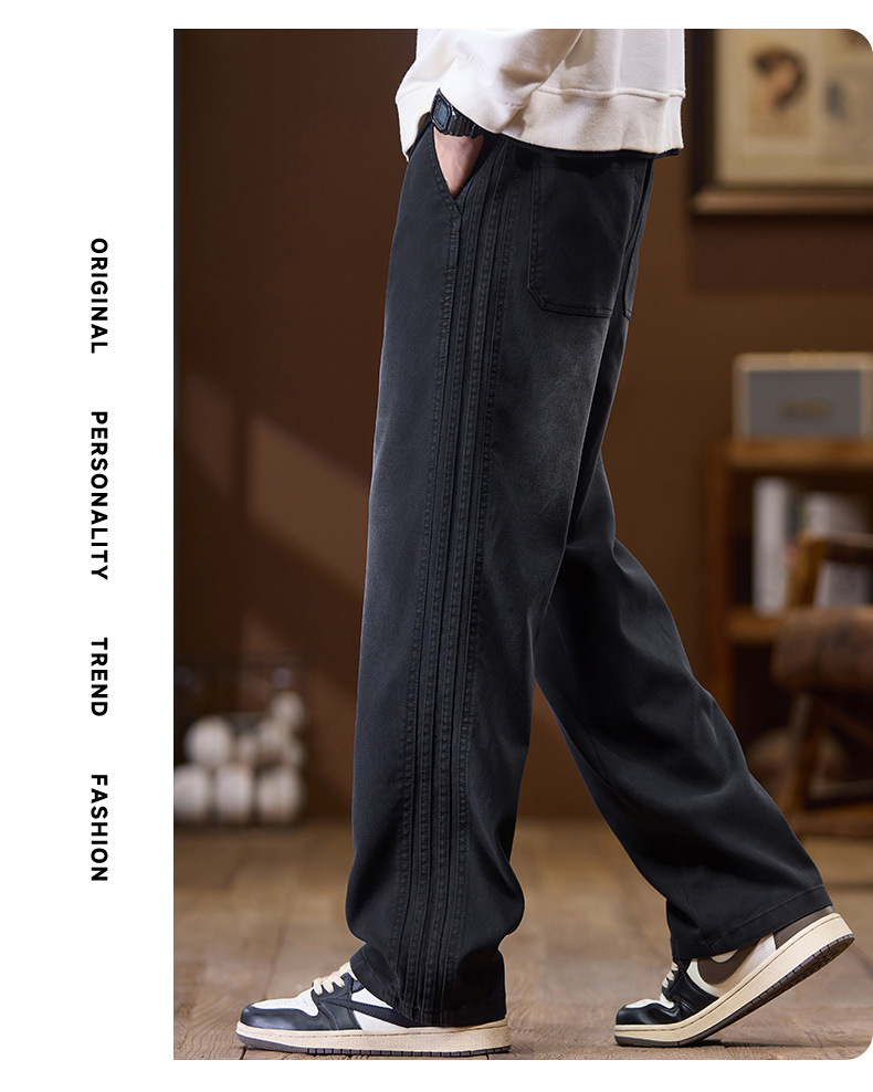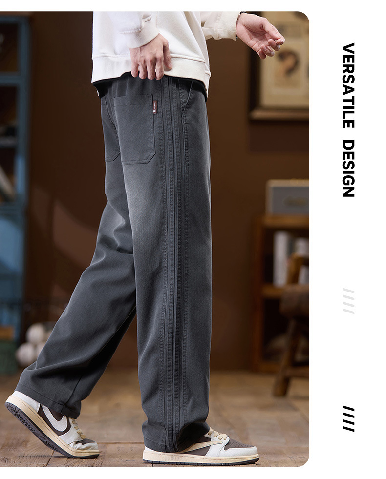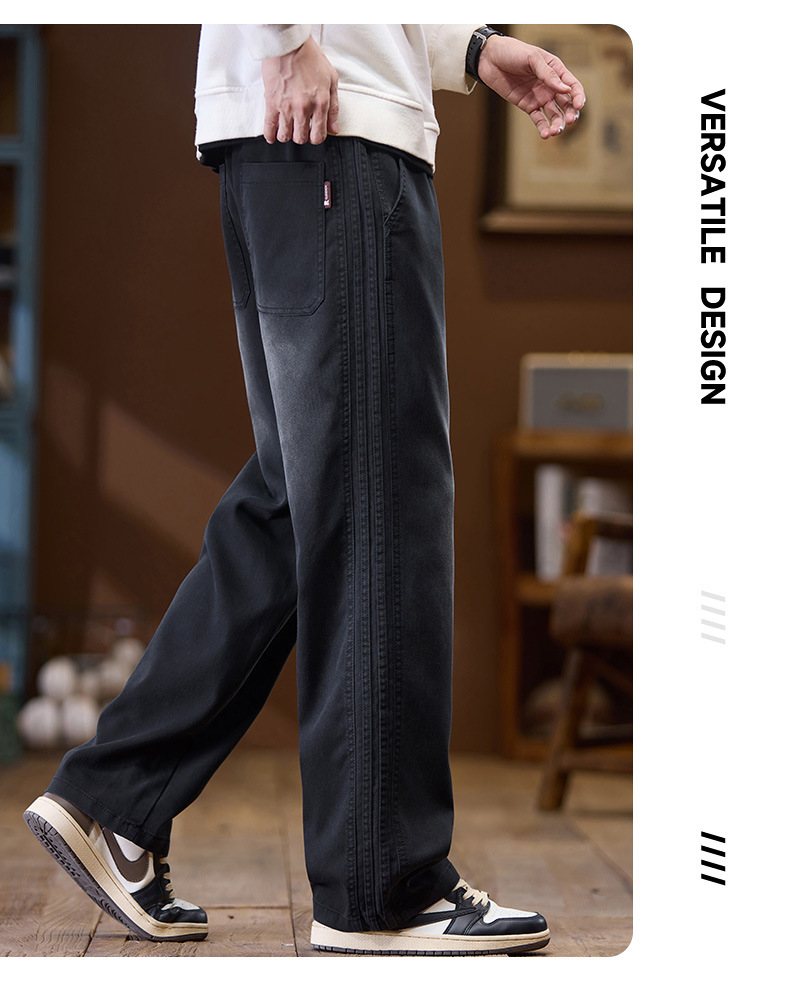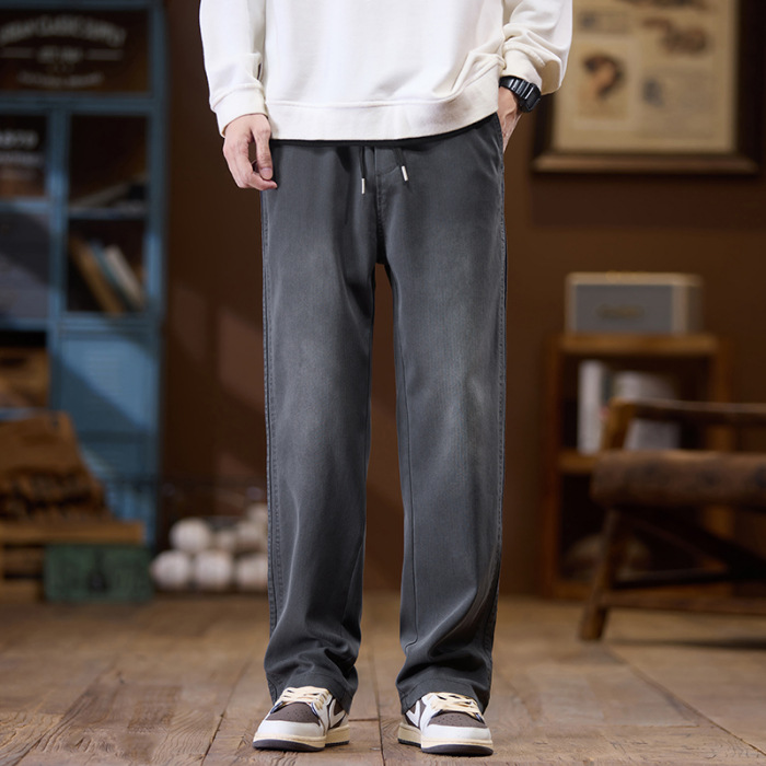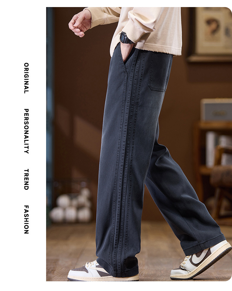 2024 봄/여름 남성 캐주얼 팬츠, 아메리칸 스타일 트렌디 브랜드, 하이 스트리트 루즈핏 스트레이트 와이드 팬츠, 만능 스타일, 스타리 블루 팬츠스토어 가기