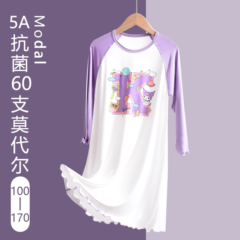 A 급 어린이 잠옷 아이스 실크 모달 여아 긴 소매 잠옷 여름 유아 여학생 집 옷 중 · 대형 어린이스토어 가기