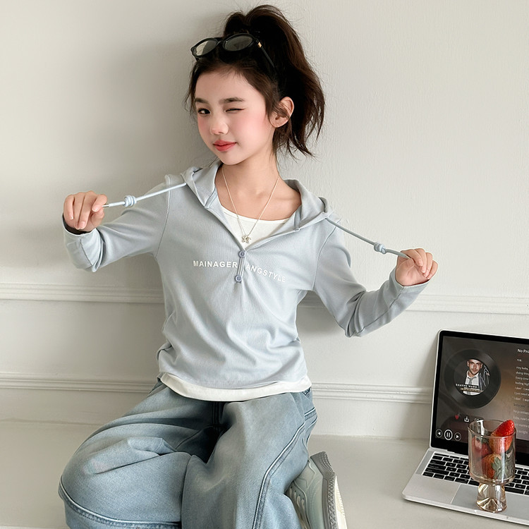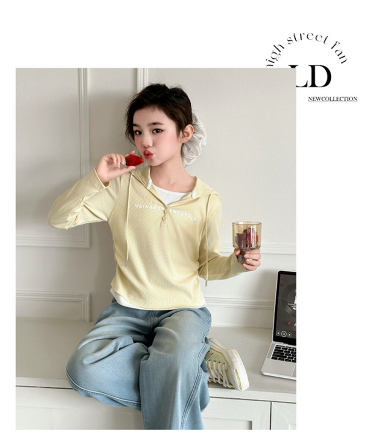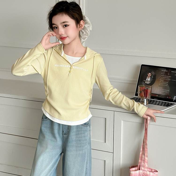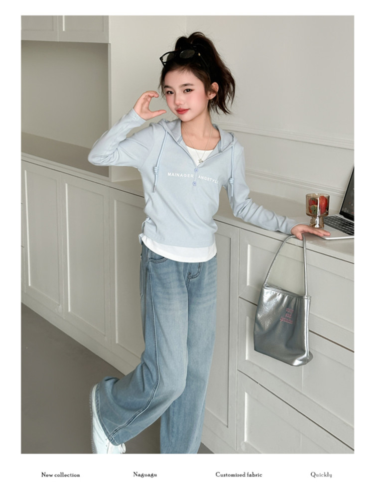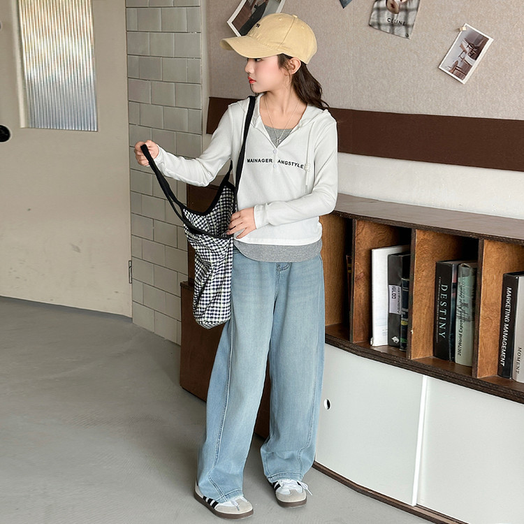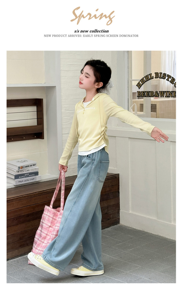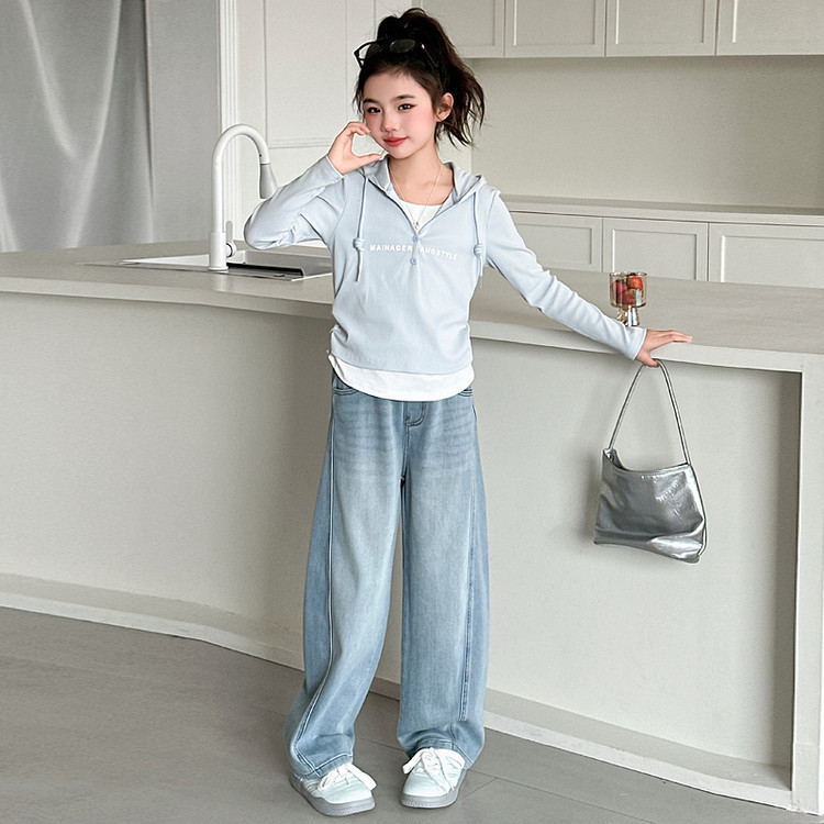 여아 스웨트 셔츠 세트 2025 새로운 봄, 가을 스타일 아동 스타일 데님 와이드 팬츠 여아 가을 투피스 세트스토어 가기