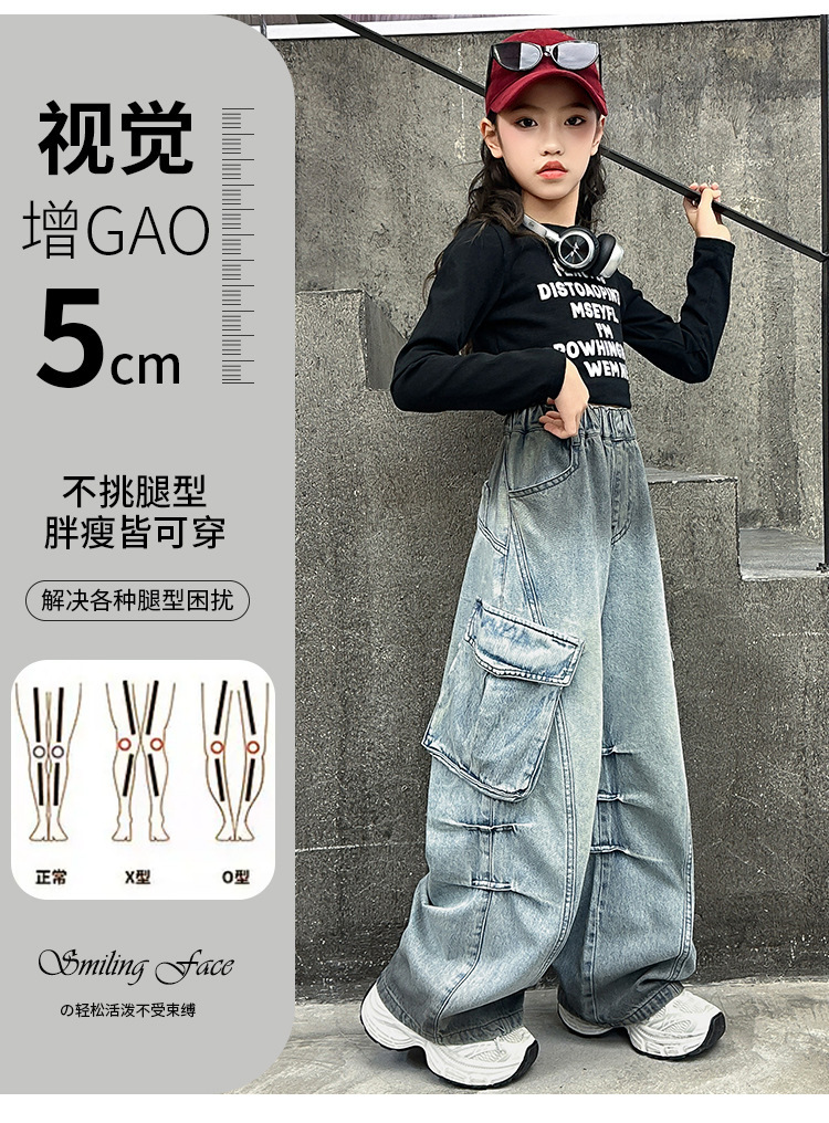 소녀의 봄 청바지 2025 새로운 세련된 유행 바지 큰 어린이 봄 소녀의 느슨한 넓은 다리 바지