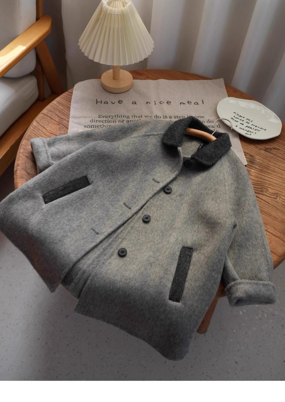 한국식 고급 호주 양모 양면 캐시미어 코트 서양식 소년 소녀 어린이 울 코트 가을과 겨울 중간 길이 트렌디스토어 가기