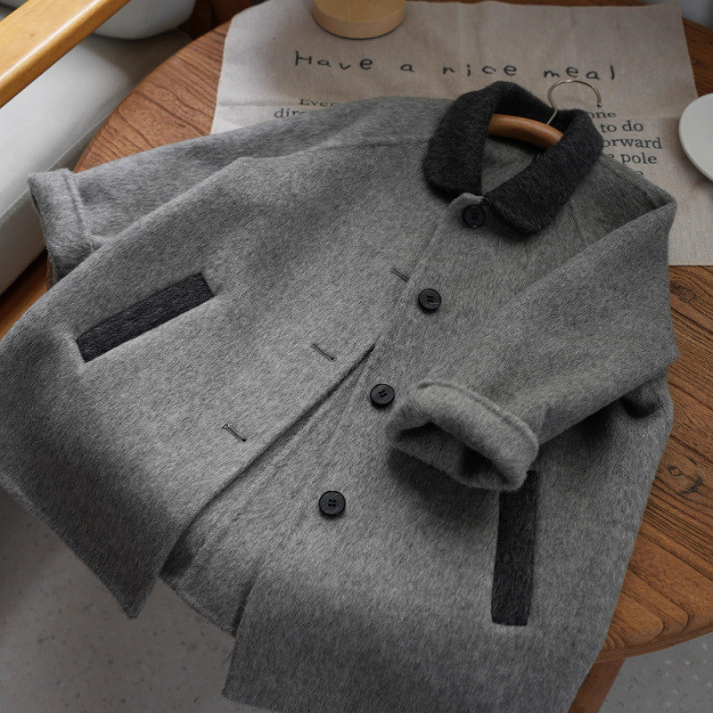 한국식 고급 호주 양모 양면 캐시미어 코트 서양식 소년 소녀 어린이 울 코트 가을과 겨울 중간 길이 트렌디