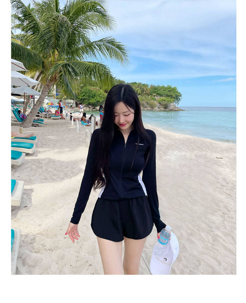 여름 Ins 스타일 긴 소매 스노클링 서핑 스포츠 다이빙 세트 2025 새로운 분할 3 피스 수영복 여성스토어 가기