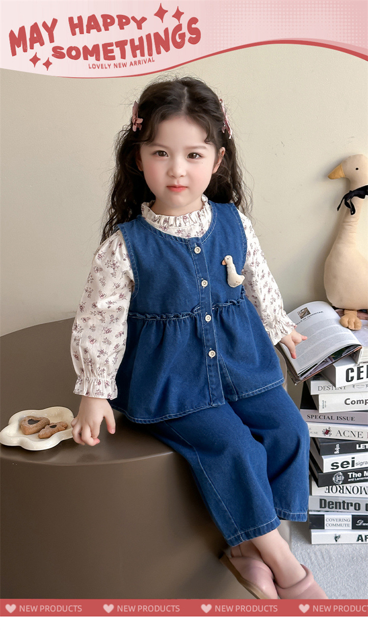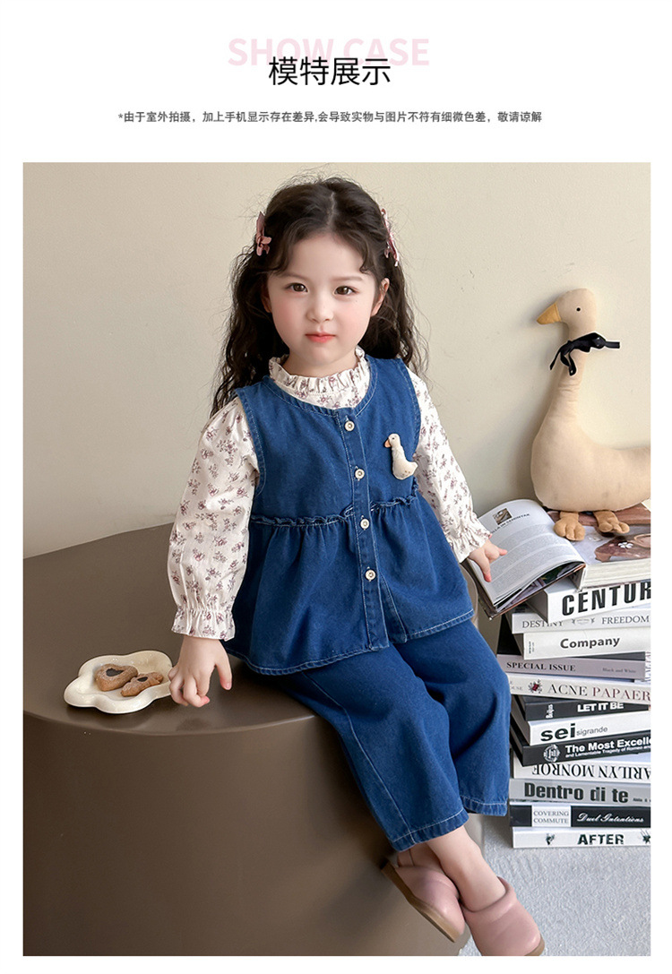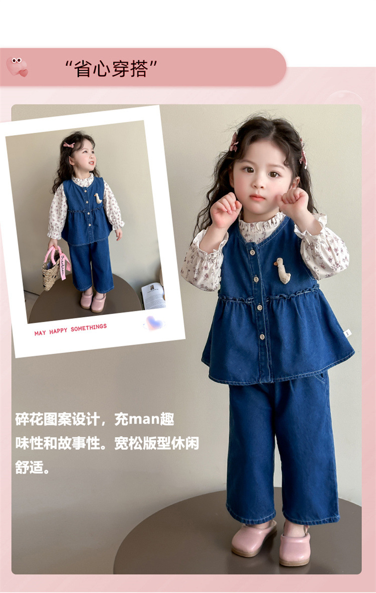 소녀의 봄 원피스 세트 2025 새로운 서양식 유행 한국 스타일 착용 어린이 데님 봄 여성의 보물 3 종 세트 트렌디스토어 가기