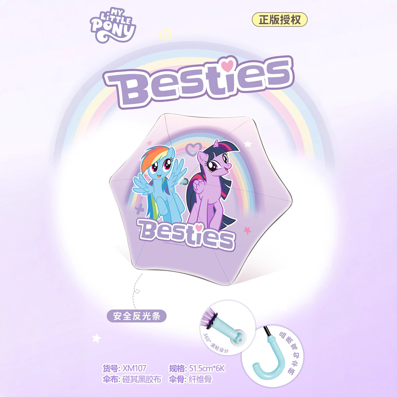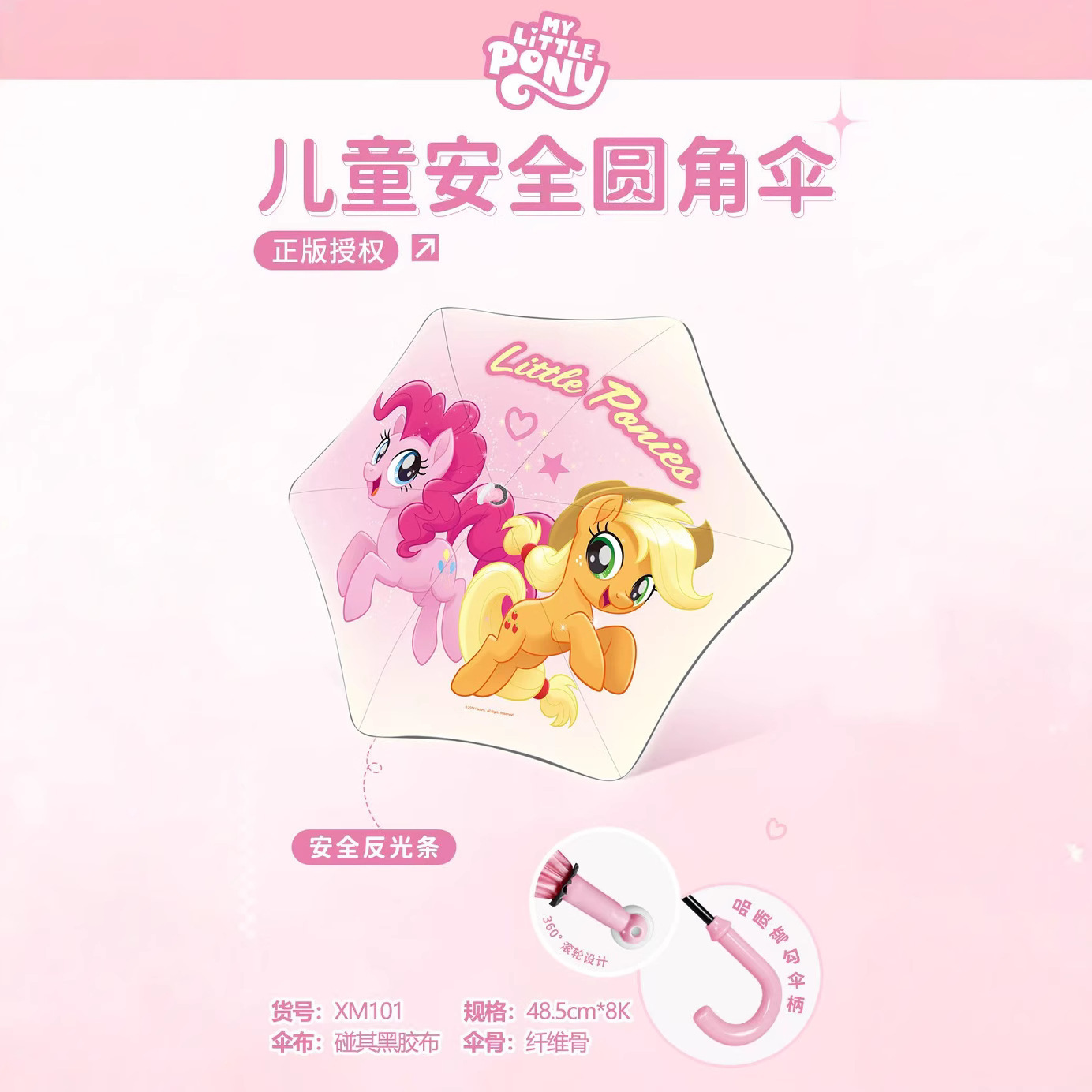 정품 포니 아기 우산 안전 어린이 우산 블랙 고무 안티-UV 자동 반사 스트립 가장자리 안전 어린이 우산스토어 가기