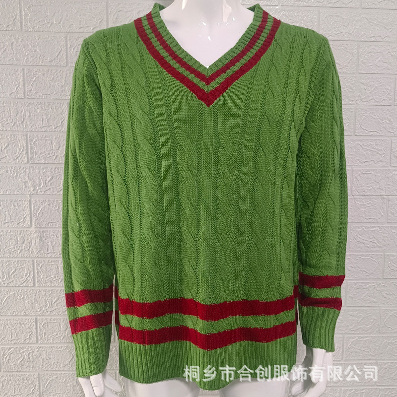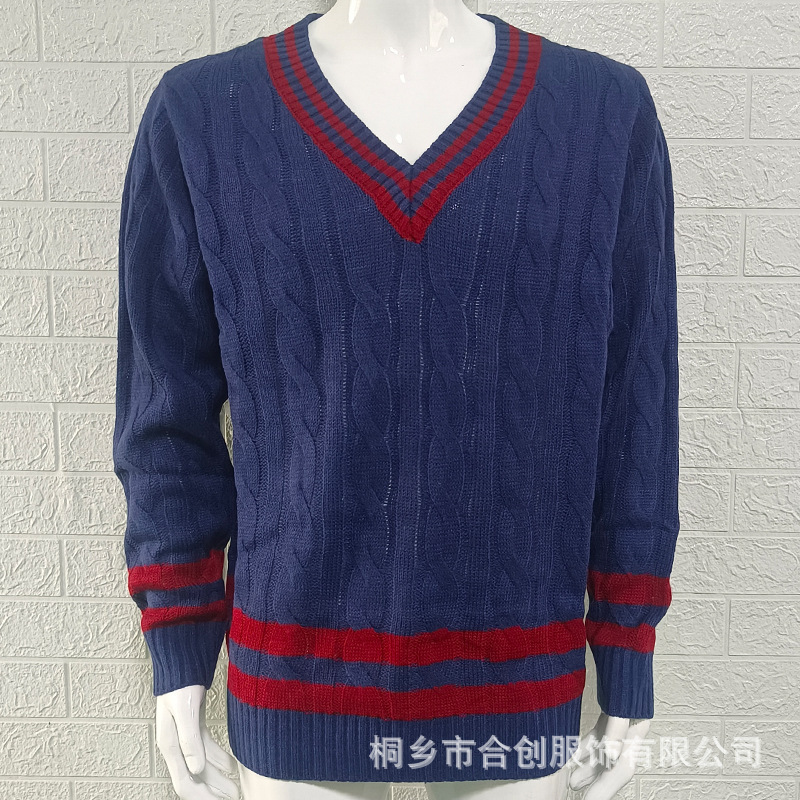 유럽과 미국의 V 넥 스웨터 남성 스트라이프 컬러 매칭 니트 스웨터 가을과 겨울 패션 크로스 보더 아마존, 남성 의류