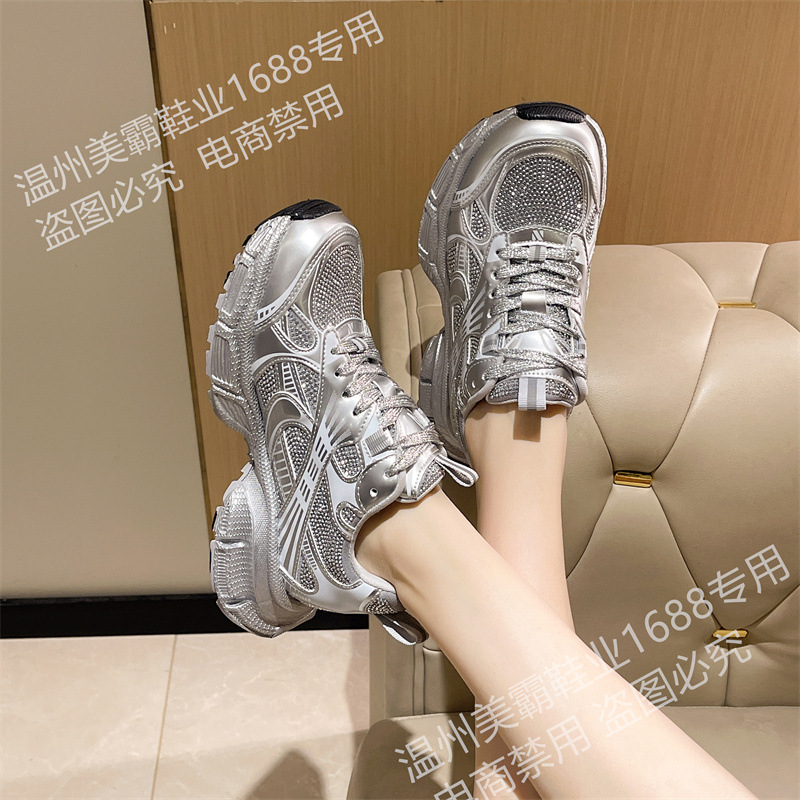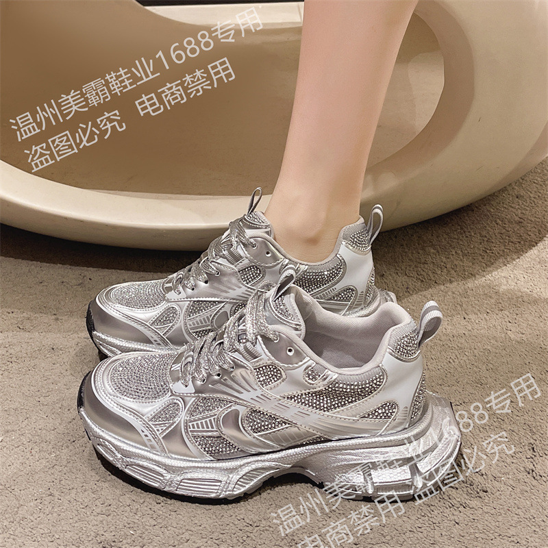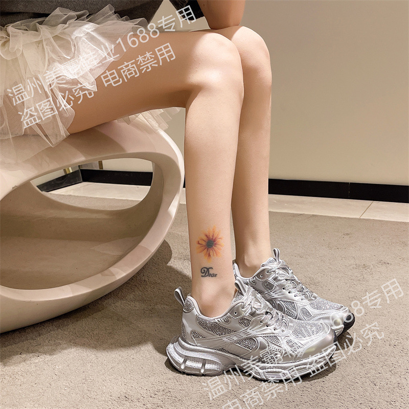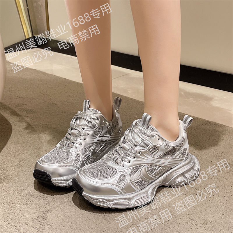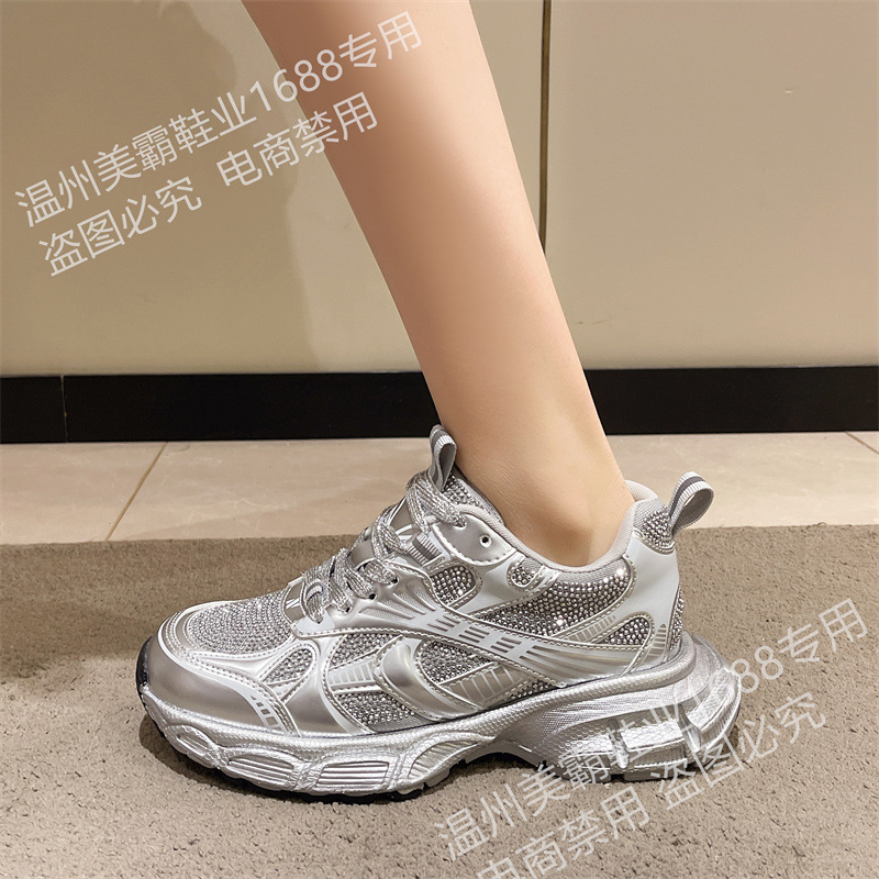 2025 봄 새 아빠 신발 여성 라인 석 작은 두꺼운 밑창 스포츠 캐주얼 신발 홍콩 스타일 하이 엔드 여성 신발