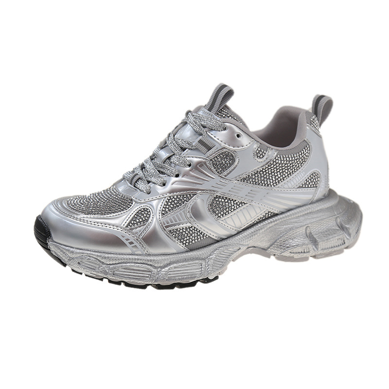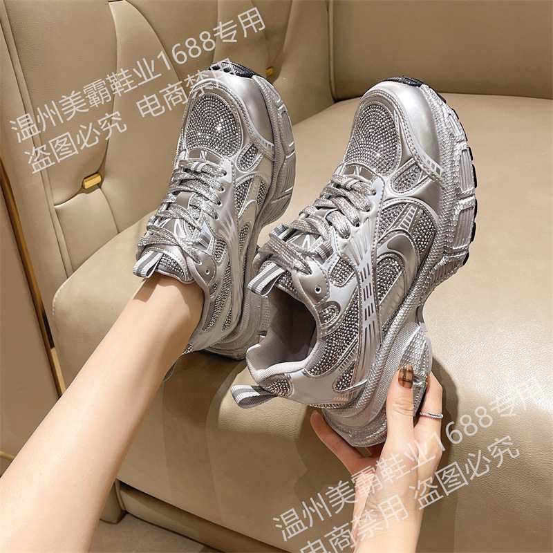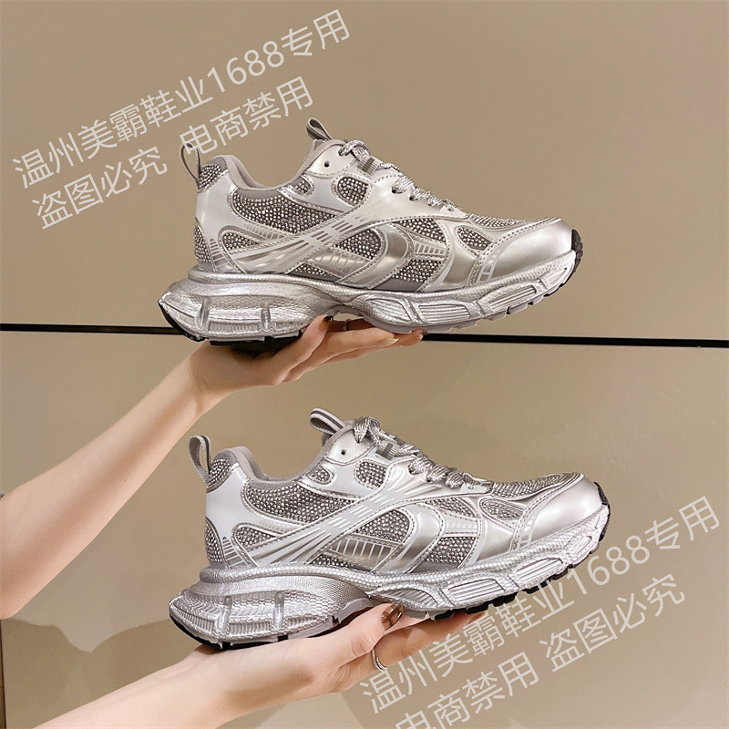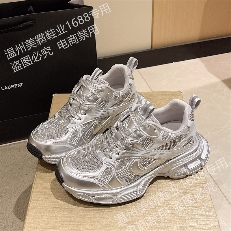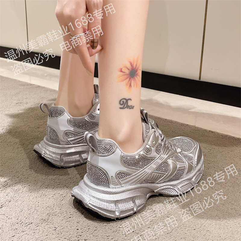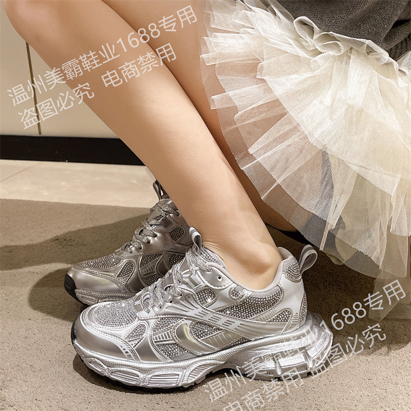 2025 봄 새 아빠 신발 여성 라인 석 작은 두꺼운 밑창 스포츠 캐주얼 신발 홍콩 스타일 하이 엔드 여성 신발