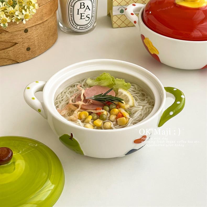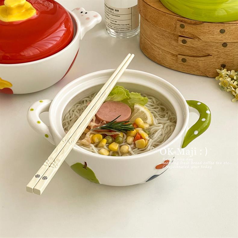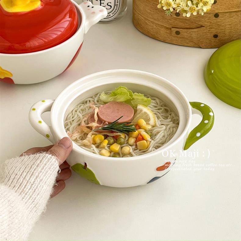 인스턴트 국수를위한 특별 그릇 대형 수용량 귀여운 수프 그릇 뚜껑 창조적 인 고 부가가치 기숙사 개인 특수 쌍안경 국수 그릇